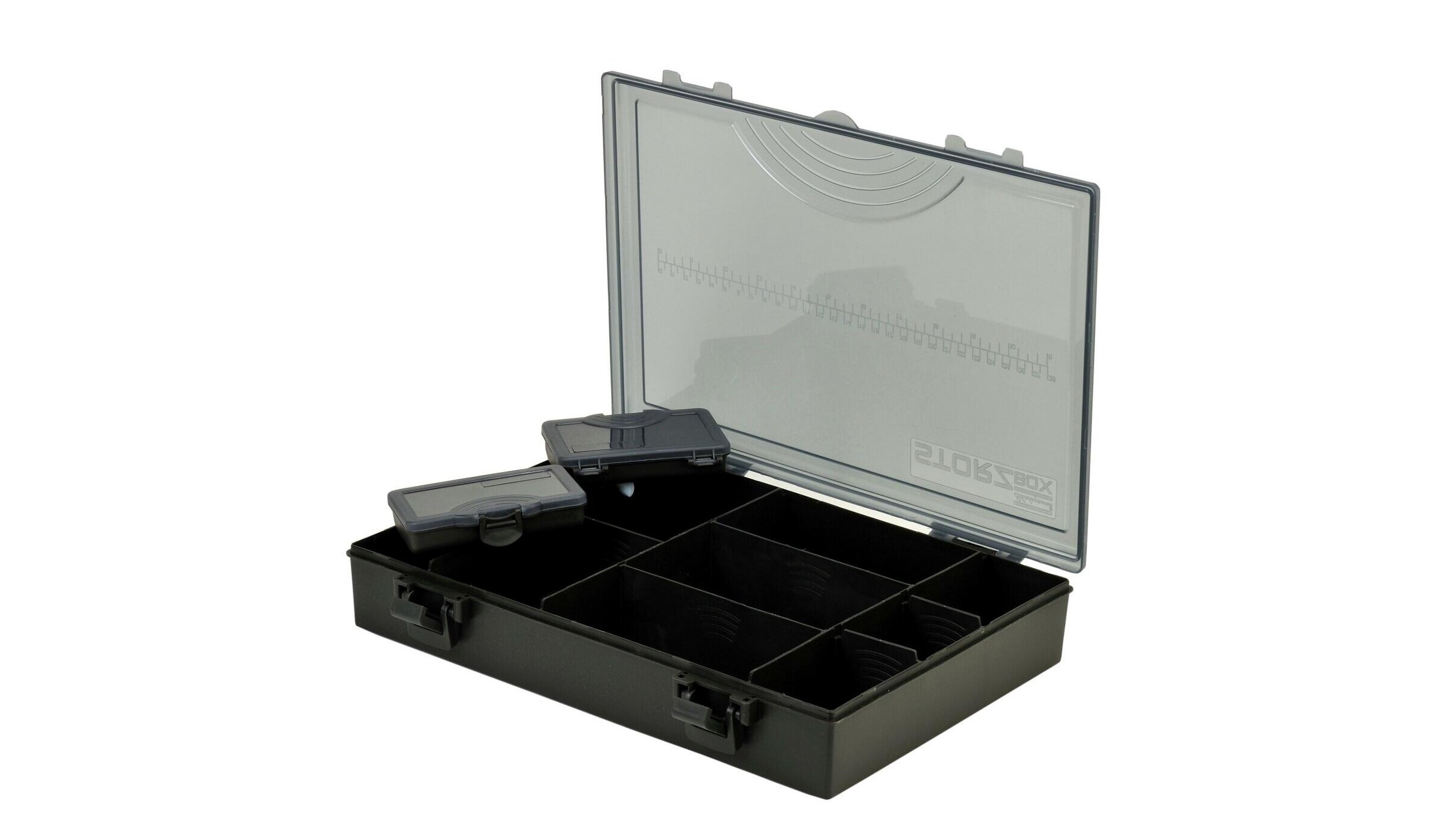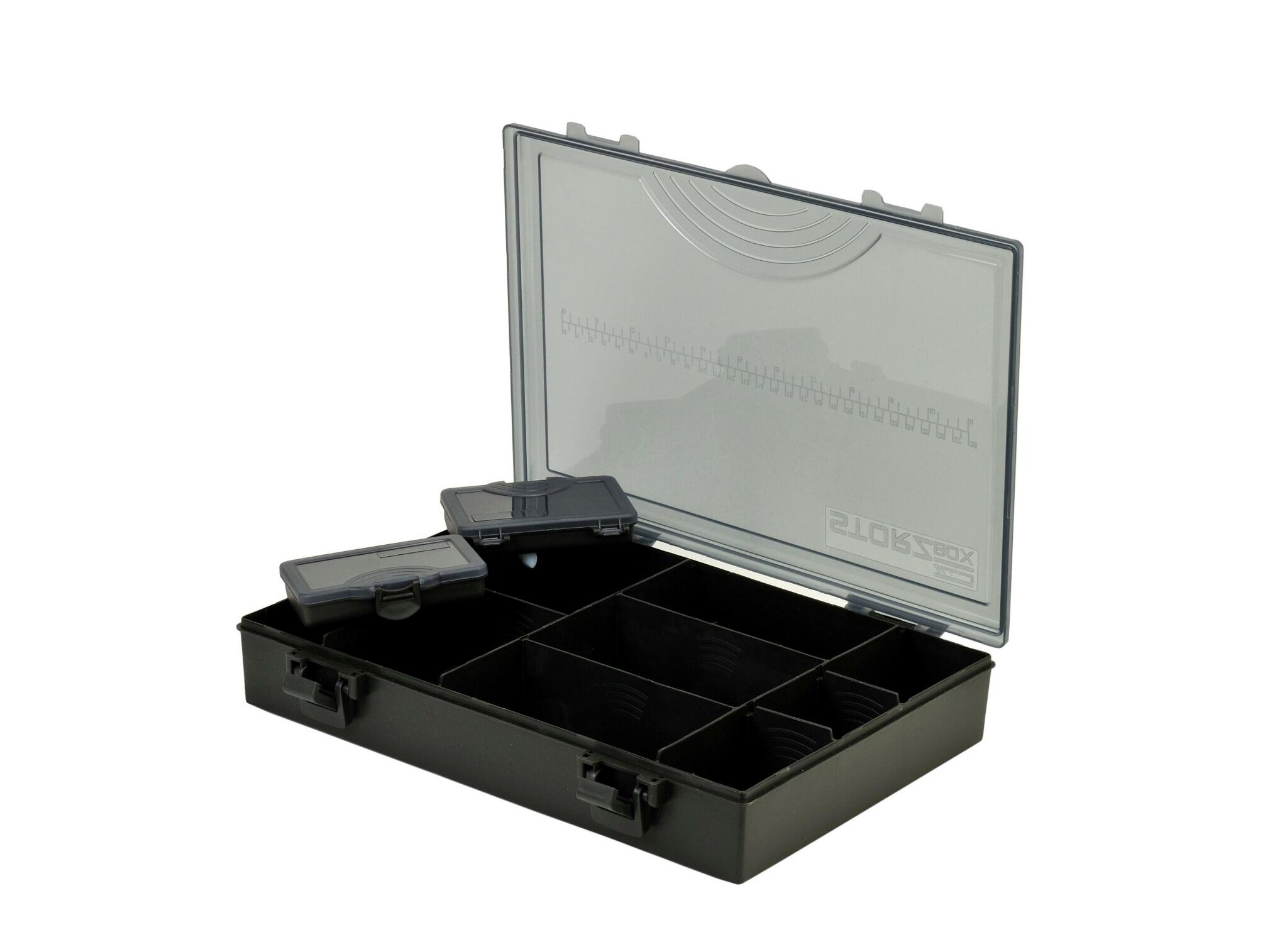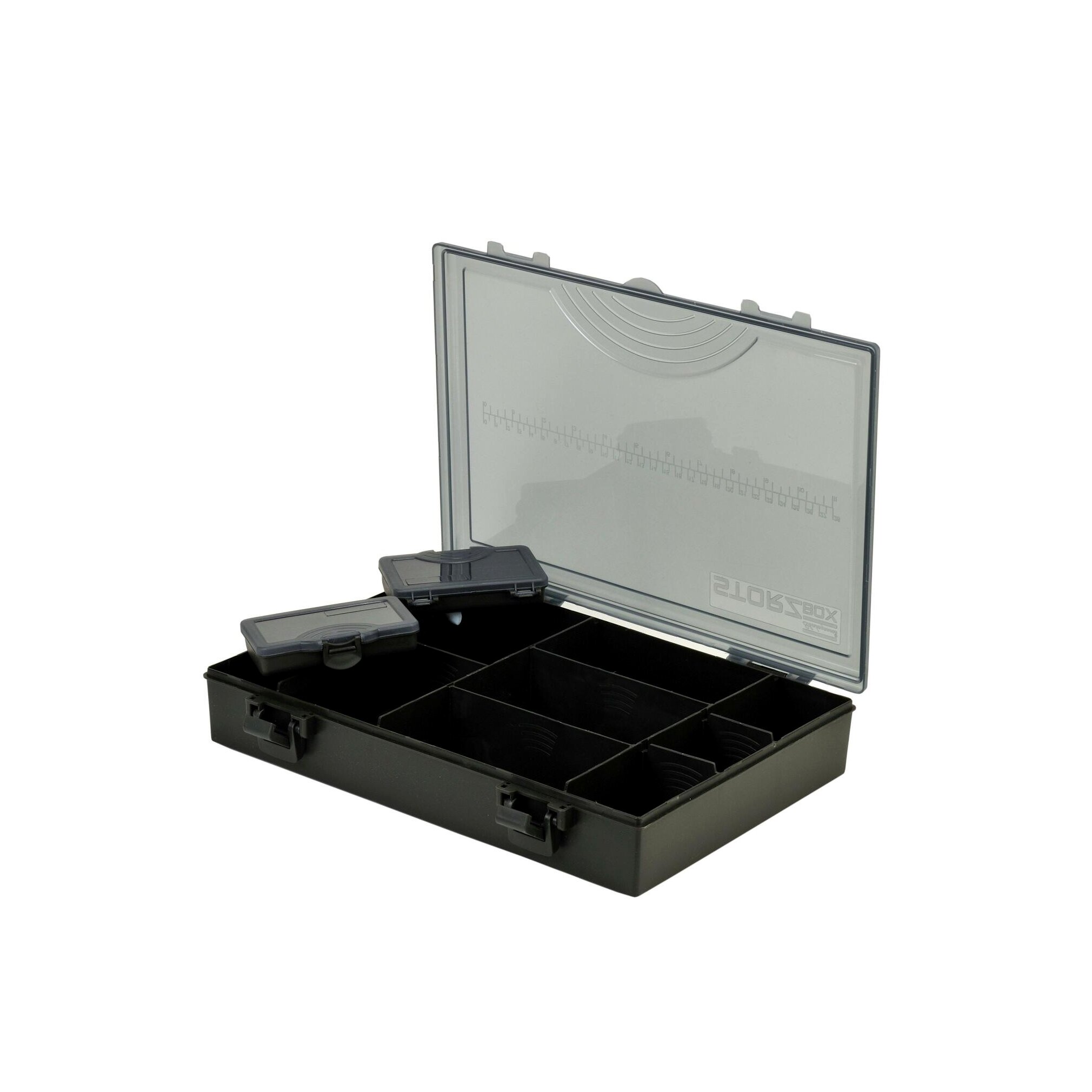 Ezek a dobozrendszerek lehetővé teszik a horgászok számára, hogy alapvető tartozékaikat biztonságos csattal lezárva, konfigurálható belső rekeszek segítségével rendezzék el. A mellékelt két kis tárolódoboz ideális a sörétólmok, kapcsok vagy horgok számára, és egy praktikus mérőskála is található a fedélen.