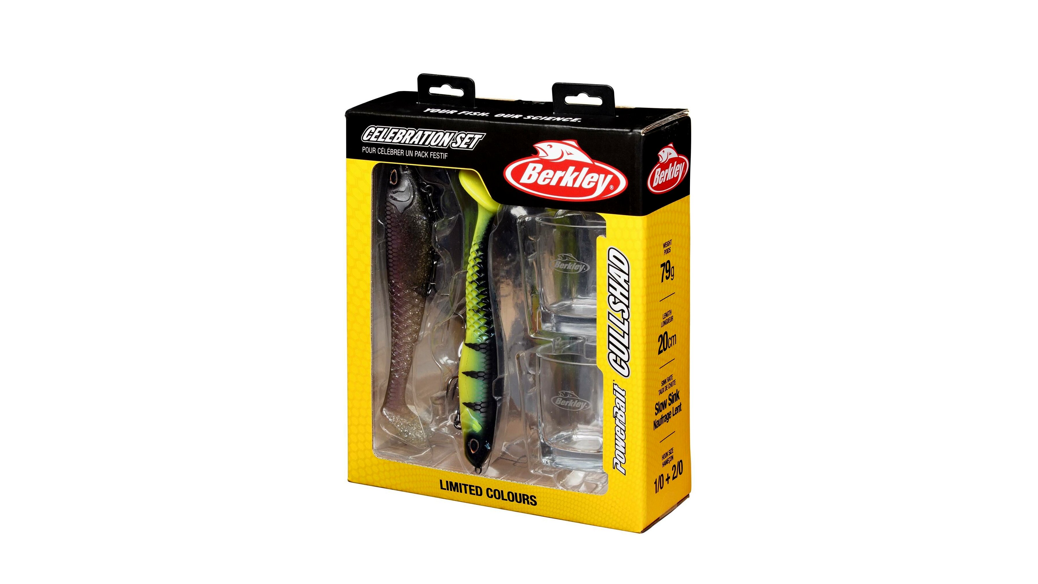 A Berkley Celebration Cullshad Shallow 20 cm ajándékcsomag azoknak készült, akik ünneplik szenvedélyüket. Két sekélyre szerelt, 20 cm-es Cullshad limitált színekben, hogy a nagy ragadozókat sekély vízben is becserkészd. A Honey Comb technológia erőteljes, élethű mozgást és extra tartósságot ad. Két egyedi Berkley-pohár teszi teljessé az ünneplést – tökéletes koccintáshoz egy sikeres nap után. Ajándéknak vagy saját örömödre: teljesítmény és móka egy stílusos csomagban.