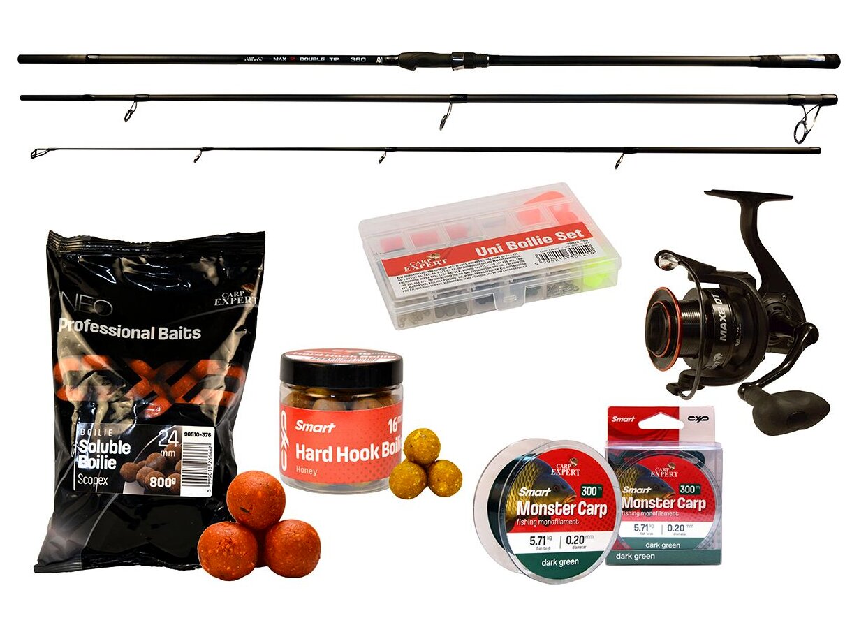 A szett alapját a Carp Expert MAX2 DT széria adja, amely a pontyhorgászok körében kedvelt a tartóssága és jó ár-érték aránya miatt. A 390 cm-es bojlis bot megfelelő erőtartalékot biztosít a nagyobb pontyok fárasztásához és a hosszabb dobásokhoz, míg a hozzá illő 6000-es méretű orsó stabil működést és megfelelő zsinórkapacitást kínál.