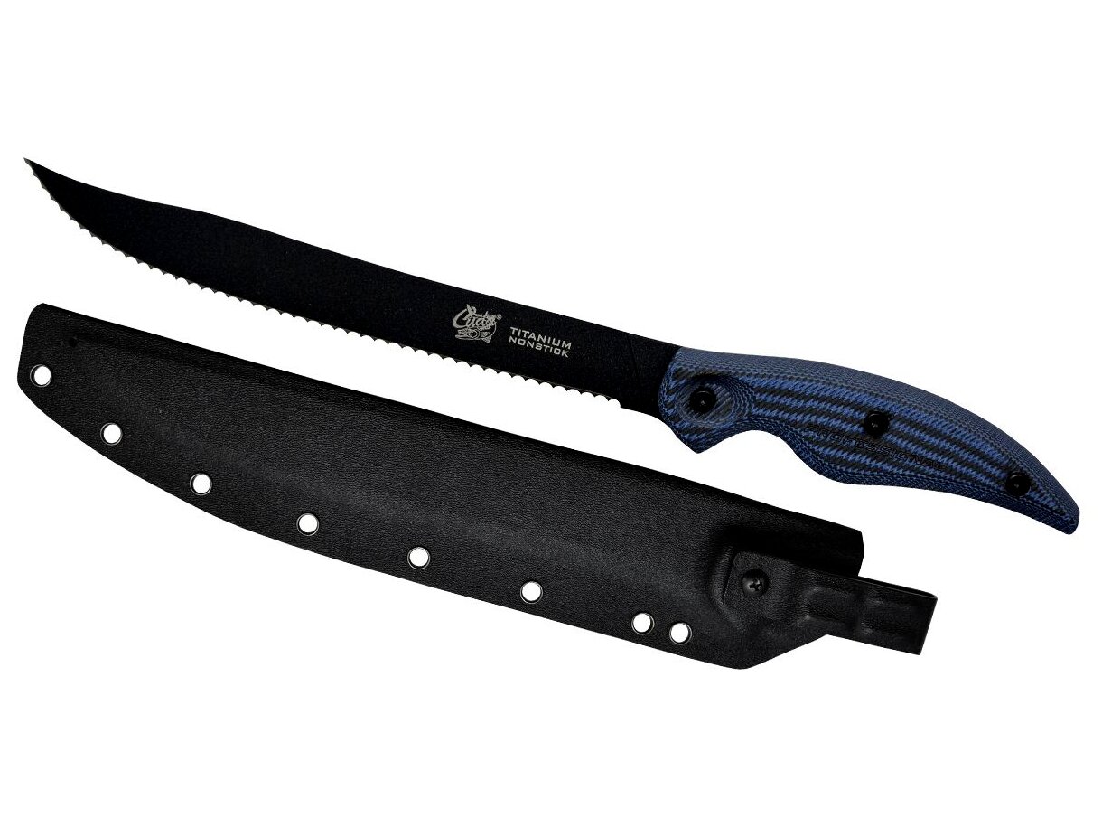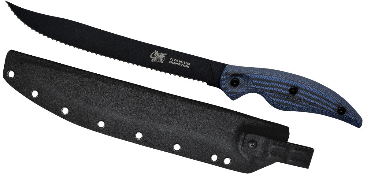 A Cuda kései eddig is a minőséget szimbolizálták, de ezzel a sorozattal csúcsminőséget kapunk a pénzünkért. A Cuda termékeinek története közel 40 évre vezethető vissza, amikor is Rick Constantine fejében megszületett az ötlet olyan csúcsminőségű kések és szerszámok használatára, melyek a horgászok és vadászok minden igényét kielégítik.Eszközeinek elkészítése során csak is a legmagasabb minőségű Titánium- és Alumínium- ötvözeteket, Német rozsdamentes Acélt használnak. Ezzel érik el azt a minőséget, melyre egyedülálló módon a termék teljes élettartama alatt garanciát vállalnak!Alkalmas halhús szeletelésre. Sósvíz álló szélesített penge jellemzi. USA 40A típusú rozsdamentes acélból készült penge. A minőségi eszközök alapja a minőségi acél! Minél több szén kerül az acélhoz, annál tartósabb anyagot kapunk. Kiváló a nagyobb halak pucolására, feldarabolására. Erősségének köszönhetően hal csontokat,szálkákat vághatunk át vele. Nyelét hidegen préselték 47 rétegből!!!Hihetelen tartós és még nedves, nyálkás kézzel is tökéletesen megfogható.Anyag a termék teljes hosszában- Sokan láttunk már olyan kést, melynek a pengéje nyélből eltört! Ez azért volt, mert az anyag nem ért végig. Ennek kiküszöbölésére a Cuda termékeiben végigfut az az anyag, ami a használati részt alkotja. Ezt bátran meg is mutatják a nyél részbe beépített átlátszó résszel. Merev tokot kapunk ajándékba, mely jól tartja késünket.