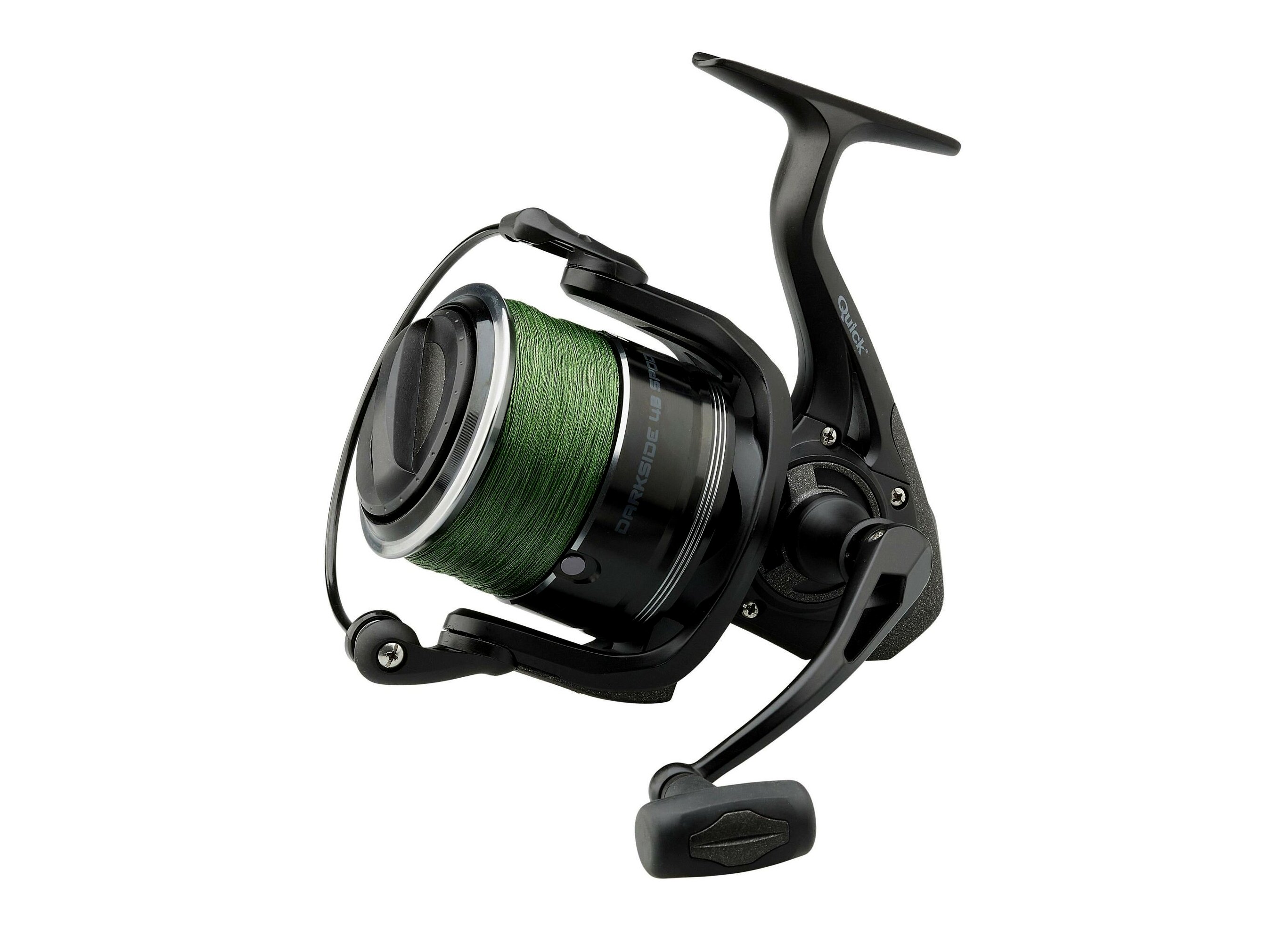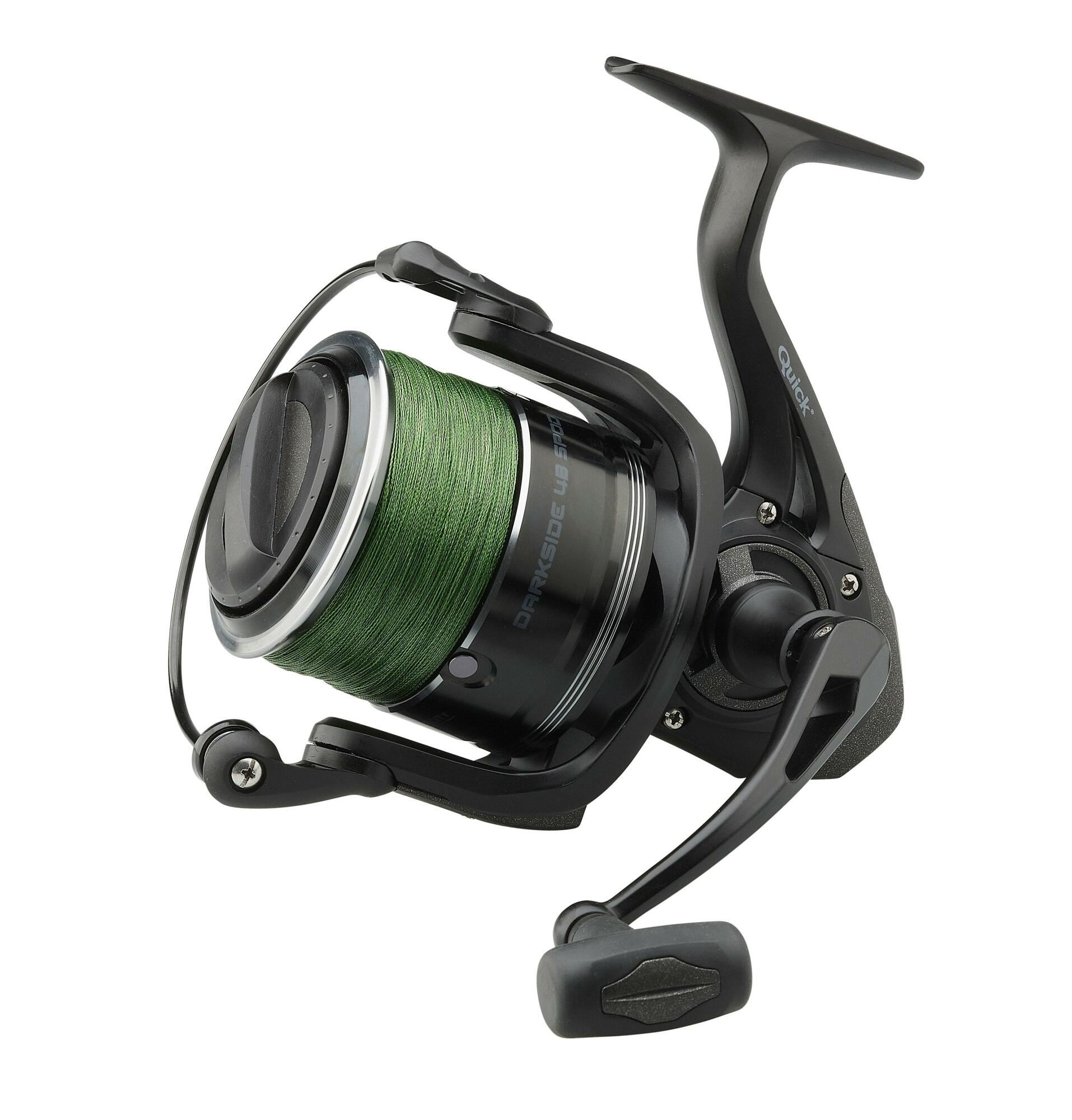A jól bevált nagy Quick orsók és nagyobb fogaskerekek felhasználásával kifejlesztett Darkside 4 egy szuper-erős spod orsó, amiben minden pontyhorgász megbízhat. Egészen nagy sebességű, 110 cm zsinór behúzás hajtókarfordulatonként. Különleges orsó kifejezetten spod használatra, három fém zsinórklipsszel és egy nagy TPE hajtókarfogantyúval. Ezt az orsót minden aspektusában úgy terveztük meg, hogy nagyszerű ár-érték arányt és teljesítményt biztosíthasson. A 4B spod zsinórral előre feltöltött verziója 200 méter 30 lb-ás 4-szálas sötétzöld fonott zsinórral kapható.
