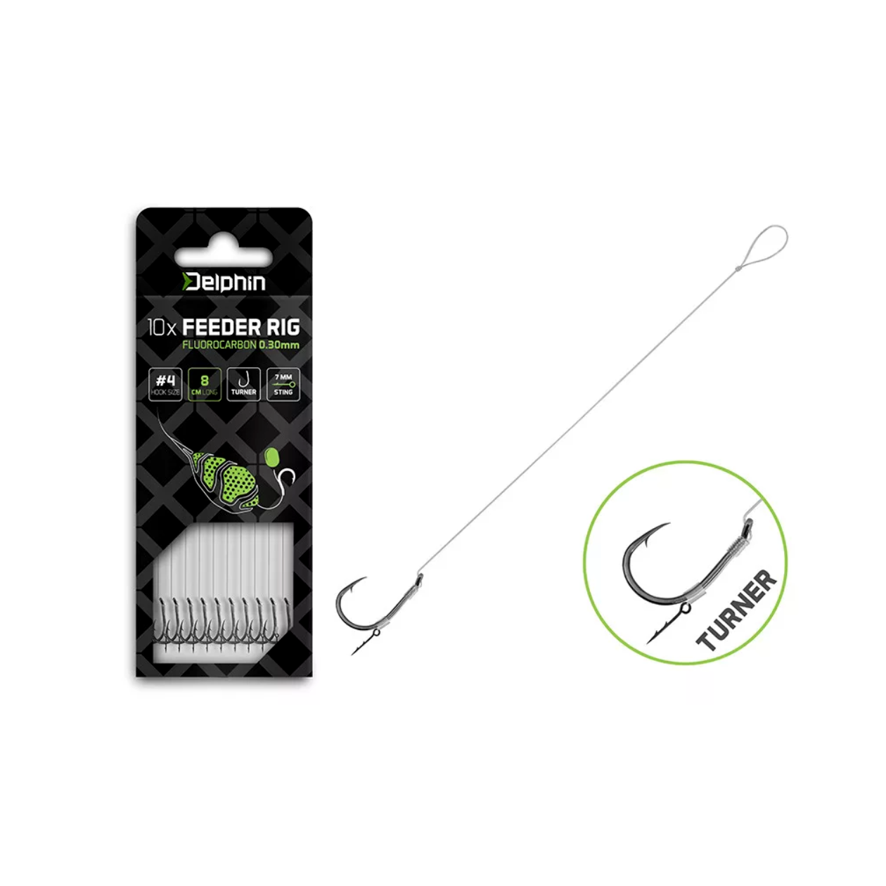 A szerelék kiváló minőségű fluorokarbon zsinórból készül, amely a víz alatt szinte láthatatlan a halak számára. Az alacsony észlelhetőség mellett nagy kopásállósággal is rendelkezik, így megbízható választás akadók közelében vagy kemény aljzaton történő horgászat során. A biztos akadást a bevált Turner és Chinu horogmodellek garantálják. Speciális kialakításuk és kivételes élességük biztonságos fárasztást garantál, miközben minimálisra csökkenti a halvesztés kockázatát.