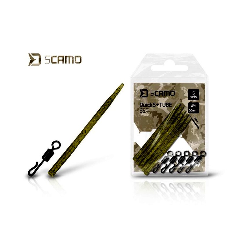 Egy praktikus szett, amely a QuickS gyorskapcsos forgó és egy sCAMO sorozatba tartozó anti-tangle hüvely kombinációja. A gyorskapcsos forgó lehetővé teszi az előre elkészített előkék villámgyors cseréjét, míg az anti-tangle hüvely biztonságosan rögzíti az előkét, megakadályozza annak lecsúszását, és dobás közben megelőzi a szerelék összegabalyodását. A hüvely felületi struktúrája és zöld színe vízinövény-szárat imitál, így tökéletesen beleolvad a környezetbe, rendkívül diszkrét és feltűnésmentes megjelenést biztosít. A hüvely teljes hossza 55 mm, a felső részén pedig 5 milliméterenként elhelyezett bevágások találhatók, amelyek segítségével egyszerűen a kívánt hosszra rövidíthető.