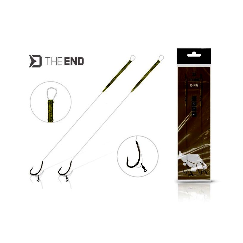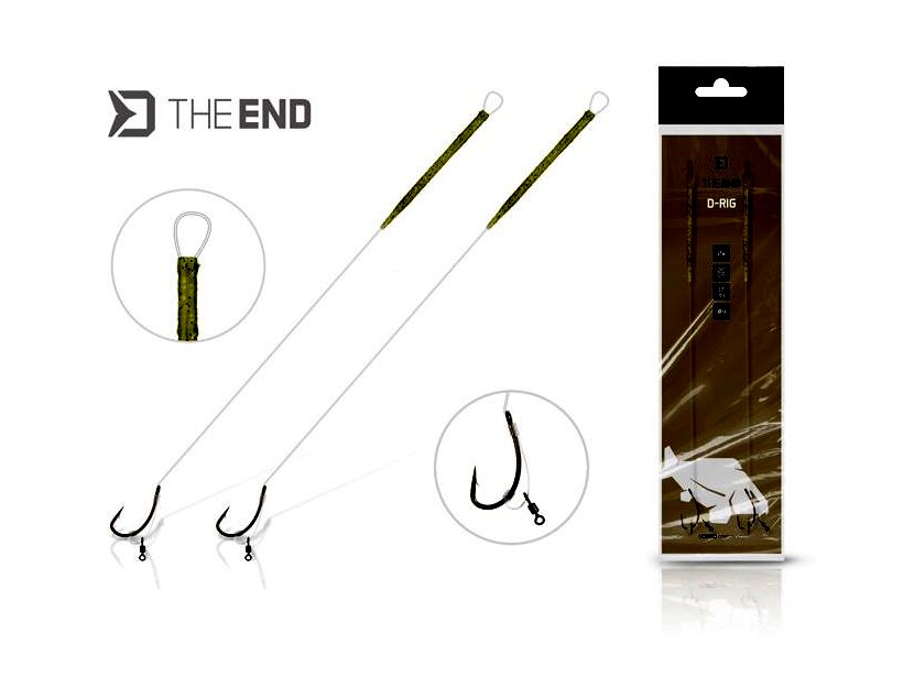 A THE END D-Rig kizárólag a legmagasabb minőségű anyagokból és a sCAMO sorozat elemeiből készül. Az előke fluorkarbonból van, így a hal szinte azonnal akad, amint felszippantja a csalit. Átlátszó színe miatt szinte teljesen láthatatlan a víz alatt, ami kulcsfontosságú az óvatos pontyok megfogásánál.
