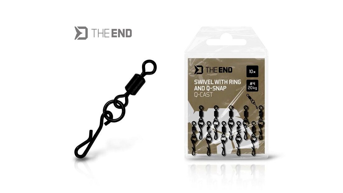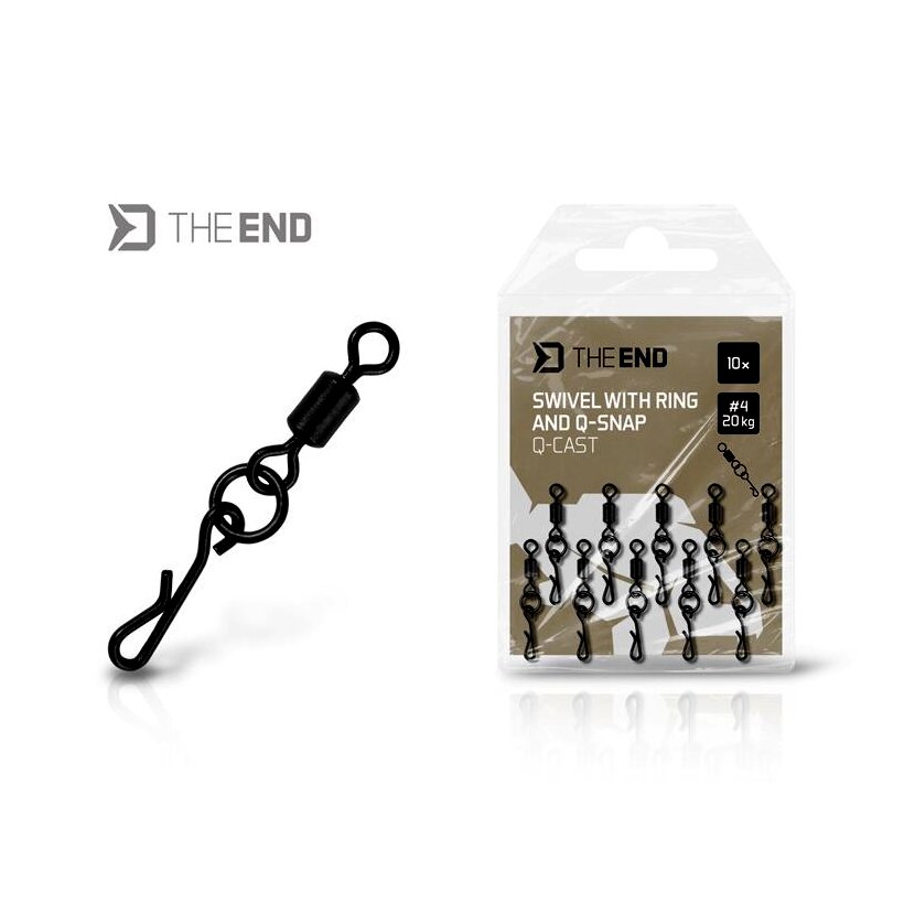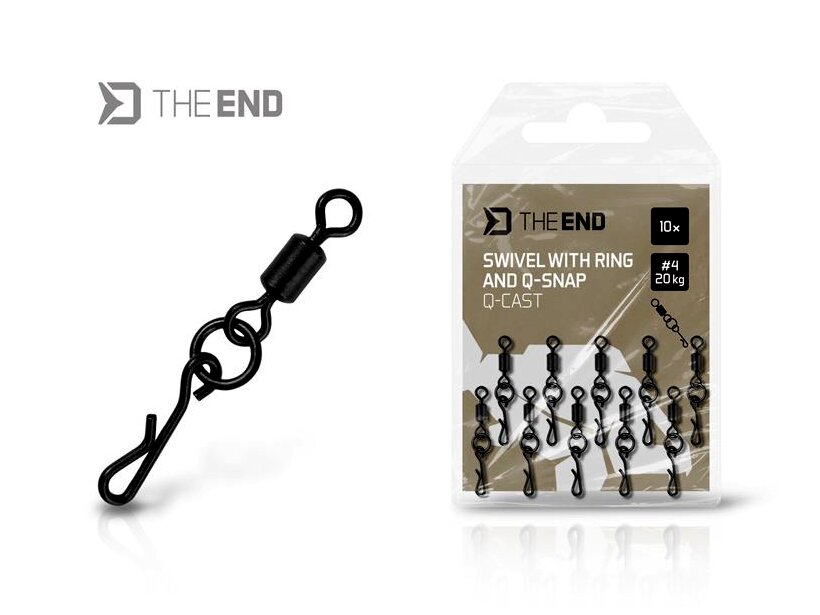 A THE END Q-Cast egy különleges forgó, karikával és gyorskapoccsal, amelyet elsősorban a hosszú dobásokra és a csali természetes felkínálására tervezett pontyos szerelékekhez terveztek. A forgó és a kapocs közé elhelyezett karika megakadályozza, hogy a szerelék összegabalyodjon dobás közben. Emellett a szerelék szélesebb mozgástartományt biztosít, így a ponty könnyebben beszippantja a csalit.