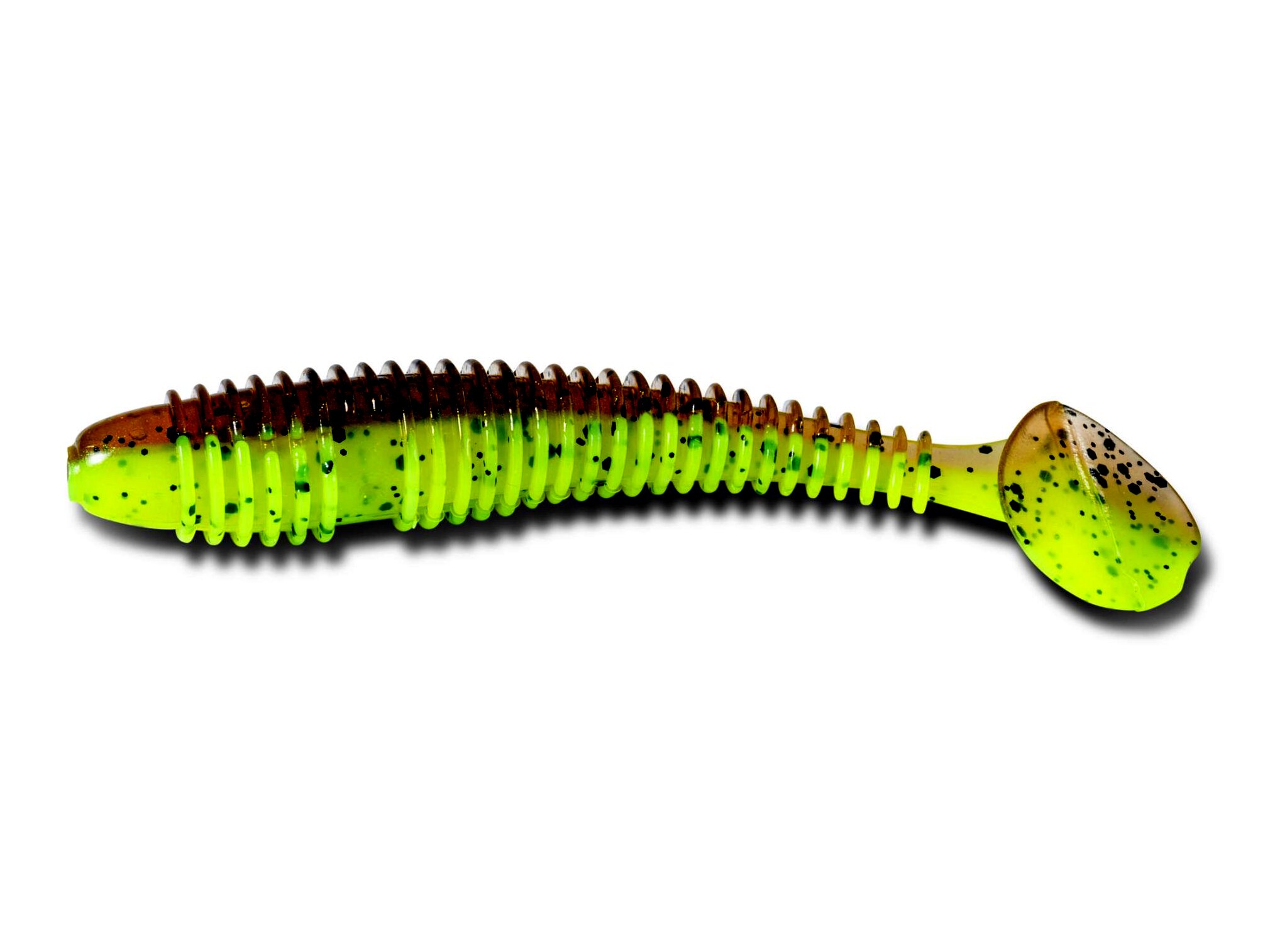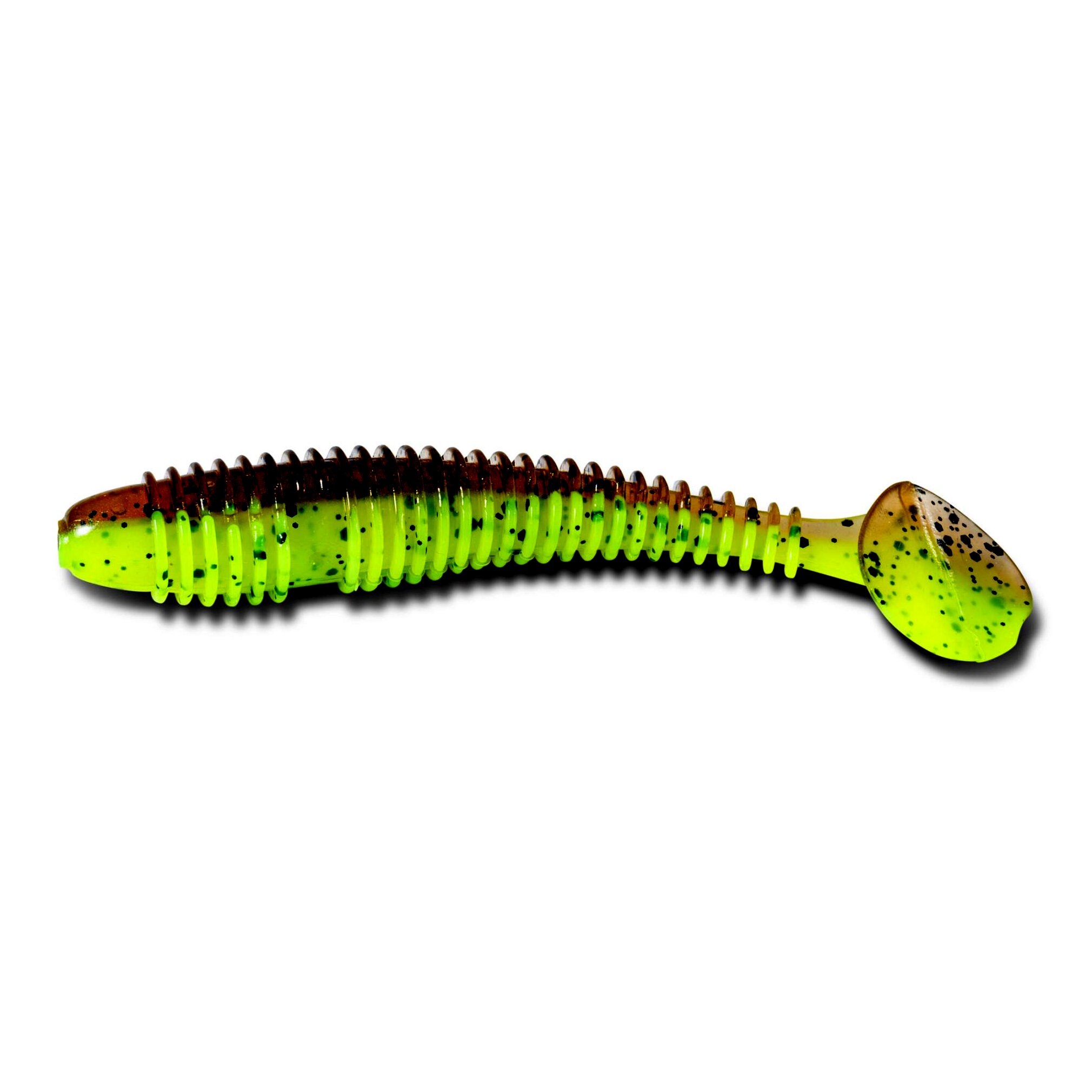 Ez a modell a klasszikus shad forma modern változata, amely nem hiányozhat egyetlen ragadozóhalas műcsalis dobozból sem. A csali kialakítása és anyagösszetétele tökéletesen igazodik a pikkelyes ragadozók zsákmánypreferenciáihoz, így különböző módszerekkel és körülmények között is eredményesen alkalmazható. UV reaktív ami sötét vízben vagy éjszakai horgászatnál nagy előny, az Iron Claw UV lámpája (9708612 cikkszám) segítségével pár másodperc alatt feltölthetjük, ezek után több percig szinte világítani fog a víz alatt.