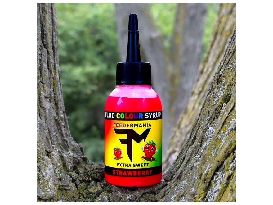 Élénk színű, eper ízesítésű szirup.