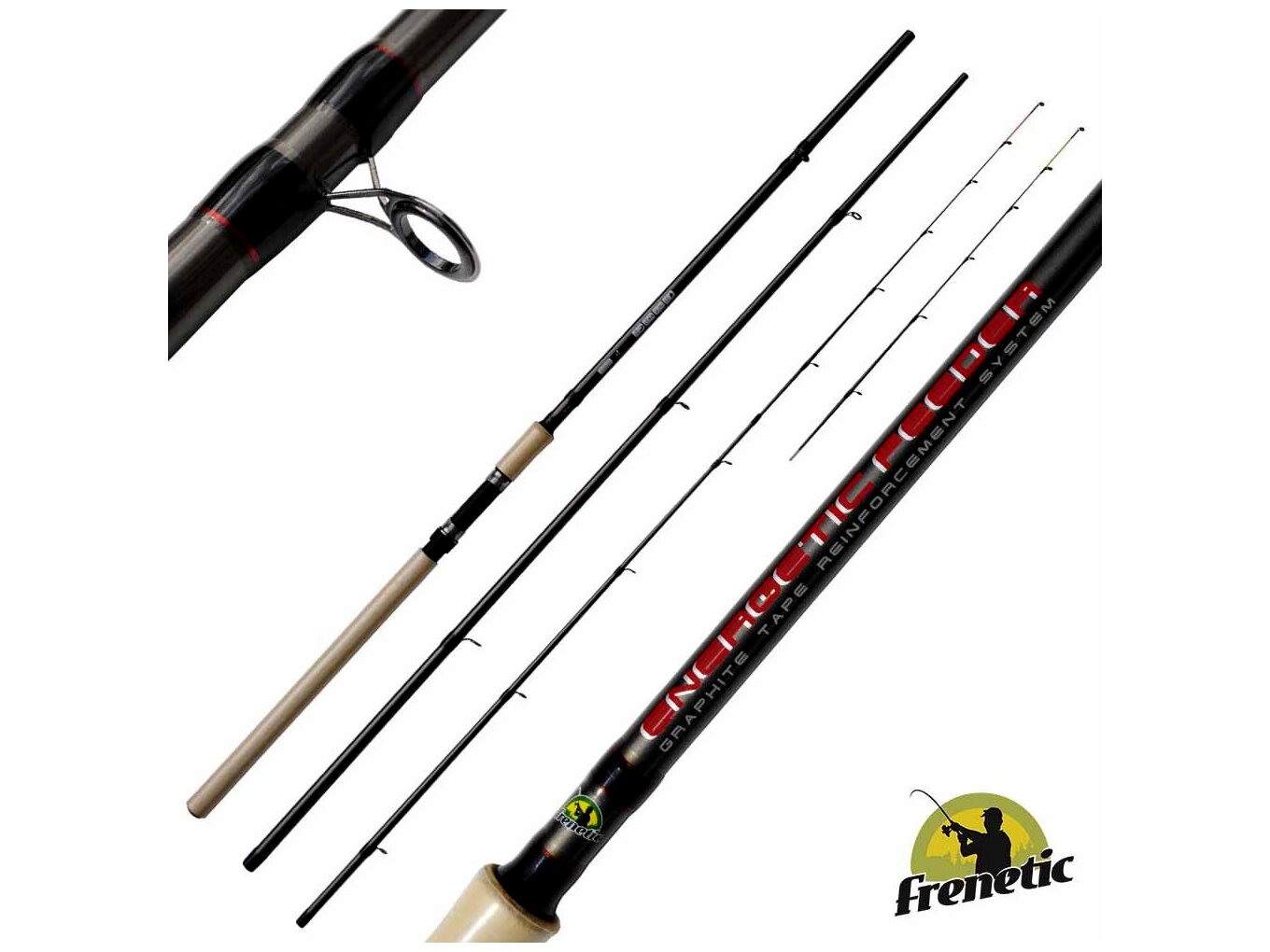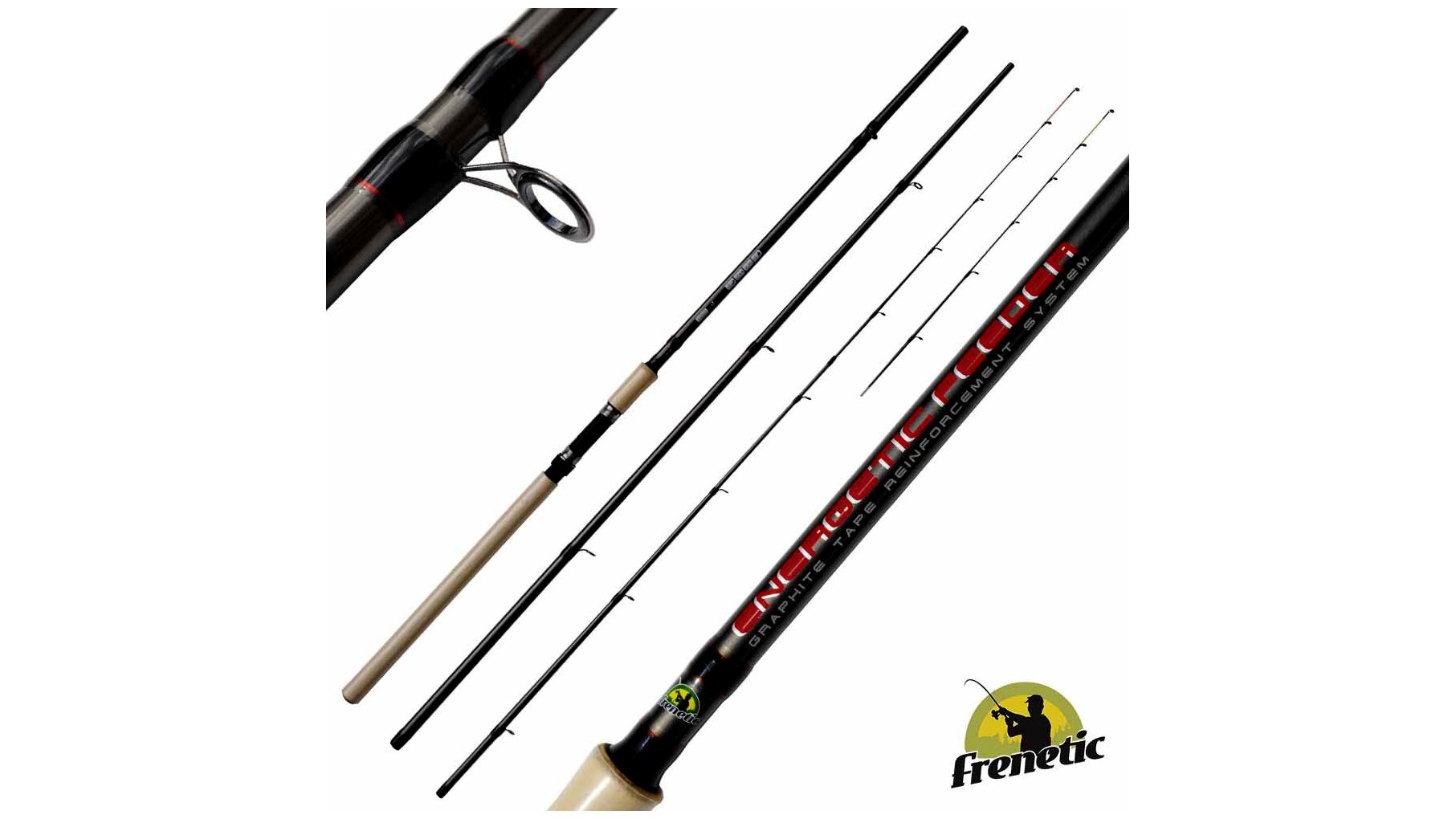Egy tökéletes FRENETIC kompozit feeder bot a kezdetekhez. Már a felépítésén látszik, hogy megbízható szinte elnyűhetetlen botot tartunk a kezünkben.Nyele parafa utánzat és SIC gyűrűkkel van ellátva.