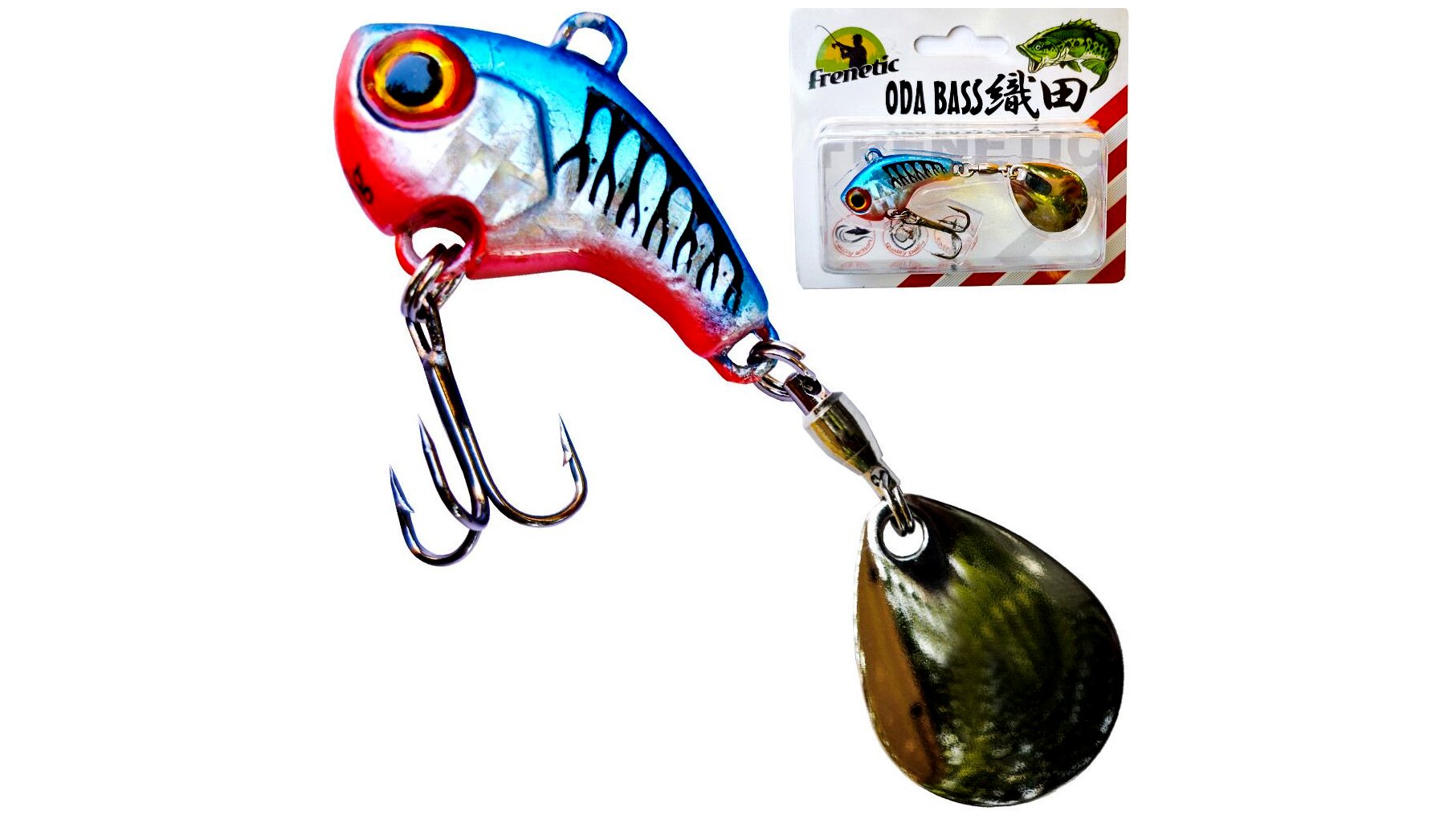 Kapós műcsali magas minőségű alkatrészekből. Krómozott forgóval és kanállal. Festve, lakkozva, szép nagy szemekkel amik a halak lelkébe néznek és meggyőzik őket, hogy ez kell nekik. Piac egyik legjobb műcsalija kiemelt minőségű kivitelben.
