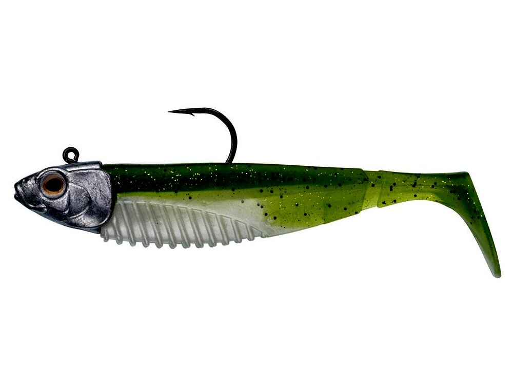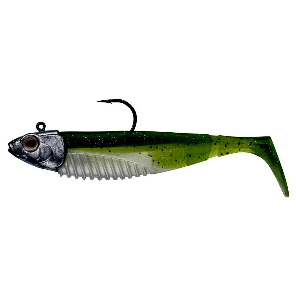SWM Ready – csali jig fejjel, amely azonnali használatra kész. A fej sajátos hosszúkás alakú, irritáló szemmel. Ez a forma stabilabbá teszi erősebb áramlatban vagy nagyobb mélységben. Ugyanakkor tökéletesen stabilizálja a csalit a felborulás ellen. A fejen található kopoltyúutánzatok segítenek a csalit szilárdan a megfelelő helyzetben tartani. A G Bump SWM sügér, süllő és csuka horgászatára alkalmas csali. A G Bump összetéveszthetetlen háromszög alakú testformával rendelkezik. A testet patafarok egészíti ki. Ez a kombináció az egész csali jellegzetes és csábító mozgását hozza létre az oldalakon. A farok mozgásával párosulva ellenállhatatlan a ragadozók számára. A G Bump simán vontatható a vízoszlopon, és a fenéken is. A testet ánizsaromával árasztják át a még nagyobb vonzerő érdekében. SBC bordázat a hason a további attraktáns - gél vagy spray - jobb felviteléért. A készlet tartalmaz 1x G Bump klasszikus ólommentes fejet 14 g, horog 2/0. A csali hossza fejjel együtt 9,5 cm, maga a gumicsali súlya fej nélkül 8 g.
