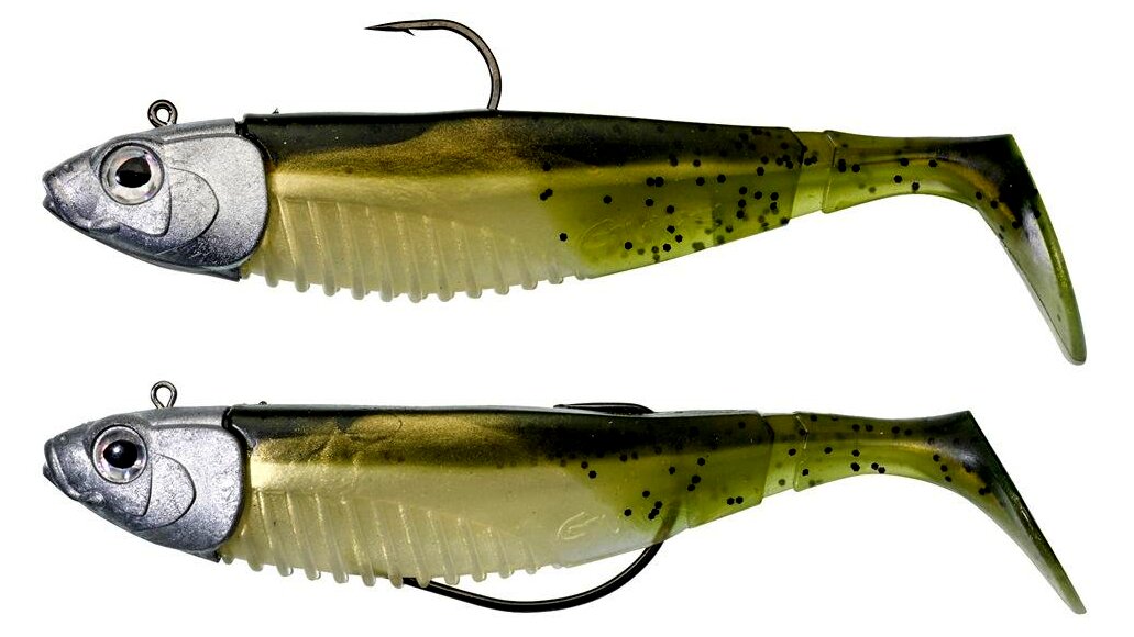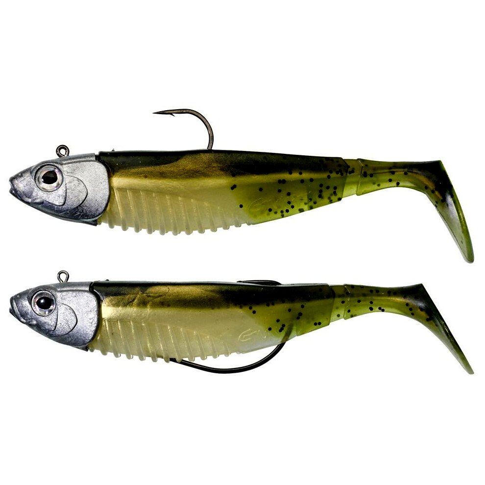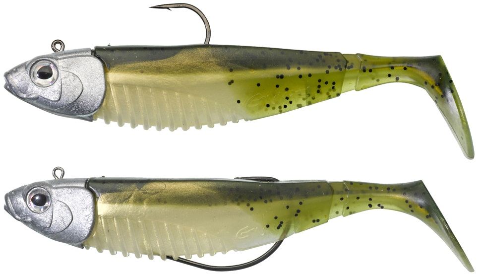 SWM Concept - Könnyen használható műcsali klasszikus fejjel vagy texas fejjel. A fej sajátos hosszúkás alakú, irritáló szemmel. Ez a forma stabilabbá teszi erősebb áramban vagy nagyobb mélységben. Ugyanakkor tökéletesen stabilizálja a csalit a felborulás ellen. A fejen található kopoltyúutánzatok segítenek a csalit szilárdan a megfelelő helyzetben tartani. A klasszikus jig fejjel fenéken való horgászatra alkalmas. A texas fej a horog rejtett helyzete miatt akadókban való használatra alkalmas, ami megakadályozza az elakadást. A G Bump SWM sügér, süllő és csuka horgászatára alkalmas csali. A GBump összetéveszthetetlen háromszög alakú testformával rendelkezik. A testet patafarok egészíti ki. Ez a kombináció az egész csali jellegzetes és csábító mozgását hozza létre. A farok mozgásával párosulva ellenállhatatlan a ragadozók számára. A G Bump simán vontatható a vízoszlopon, és a fenéken is. A testet ánizsaromával árasztják át a még nagyobb vonzerő érdekében. SBC bordázat a hason a további attraktáns - gél vagy spray - jobb felviteléért. A készlet tartalma: 1x G Bump klasszikus ólommentes jig fejen 34 g, horog 5/0 és 1x G Bump texas ólommentes fejen 34 g, horog 5/0. A csali hossza fejjel együtt 14,5 cm, maga a gumicsali súlya fej nélkül 20,5 g.