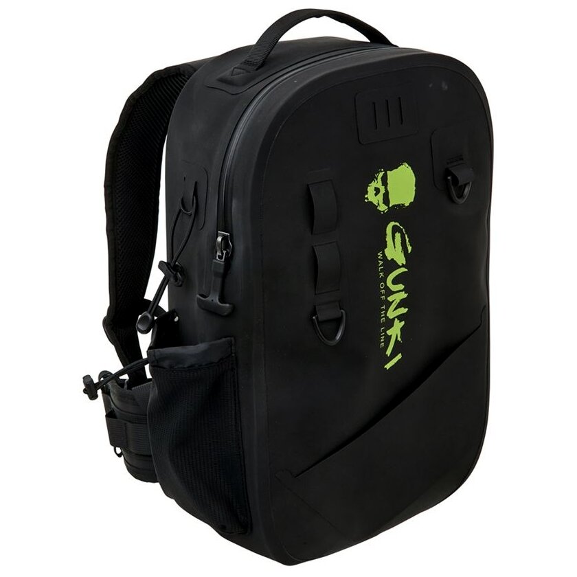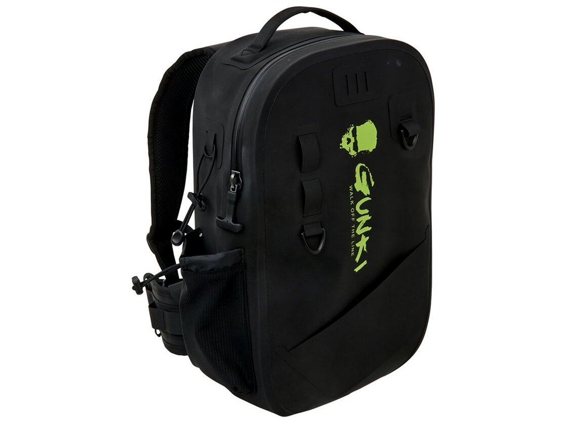 Kötelező darab gázlóhorgászathoz! A vízálló GUNKI PROTEAM BACKPACK hátizsákot azoknak a horgászoknak tervezték, akik horgászat közben a vízben mozognak, hogy elérjék a nehezen elérhető helyeket, vagy hosszabb dobásokat végezzenek. Az alja egy tömör blokkból készült, amely megvédi a hátizsák tartalmát, amikor az a víz felszínével érintkezik. A felhasznált anyagok, a lezárt varratok és a vízálló cipzár (amely nem ér véget az alján) magas szintű védelmet biztosítanak a víz behatolása ellen. A hátizsák vízálló 900D poliészter anyagból készült TPU bevonattal, és megfelel az IP6 vízállósági besorolásnak. Erős, kompakt, és 'D' gyűrűkkel és pántokkal van felszerelve további felszerelések, például merítőháló, csalik vagy fogó rögzítéséhez. Oldalt található egy zsebrendszer állítható pánttal, amelyre vizes palackot vagy pótbotot lehet hordozni. A párnázott vállpántok és az állítható mellkaspánt kényelmet biztosítanak séta, gázolás vagy hosszabb ideig tartó terepen való mozgás közben, miközben nem korlátozzák a mozgást horgászat közben. Technikai, tartós és vízálló hátizsák igényes horgászoknak. Méretek: 43 × 26,5 × 12 cm. Anyag: 900D poliészter TPU bevonattal.