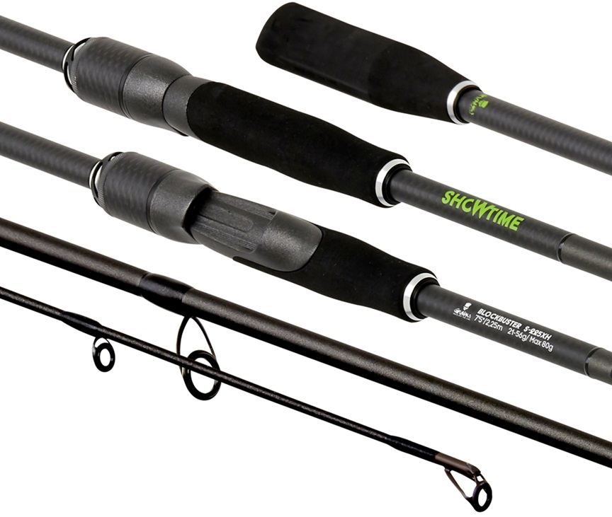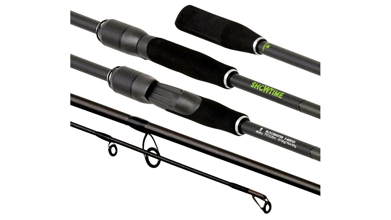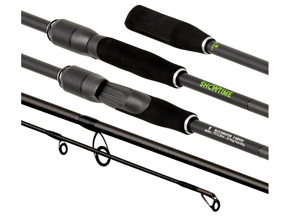 Showtime Block Buster S 225XH: hossz 225 cm, tagok száma 2, dobósúly 21–56 g (max. 70 g), szállítási hossz 117 cm, súly 160 g, gyűrűk száma 8.