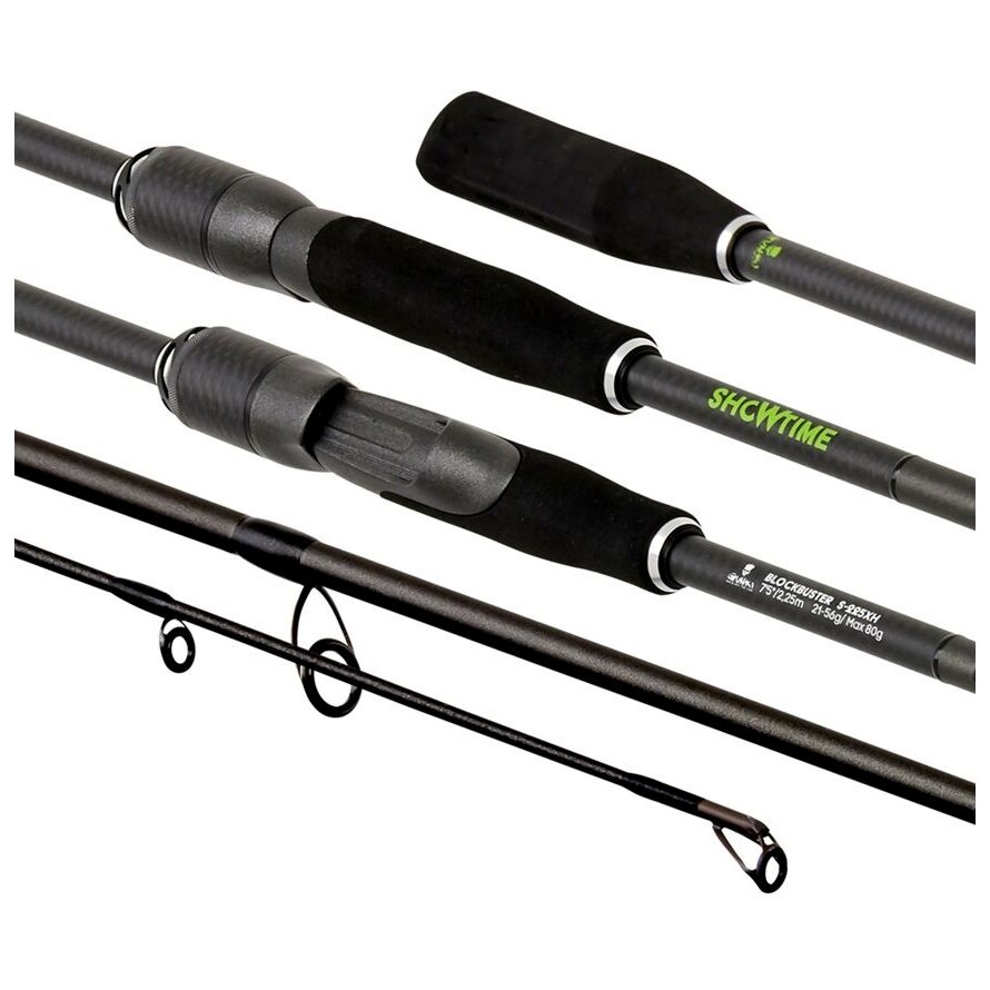 Showtime Block Buster S 250XXH: hossz 250 cm, tagok száma 1+1, dobósúly 42–140 g (max. 180 g), szállítási hossz 207 cm, súly 169 g, gyűrűk száma 9.