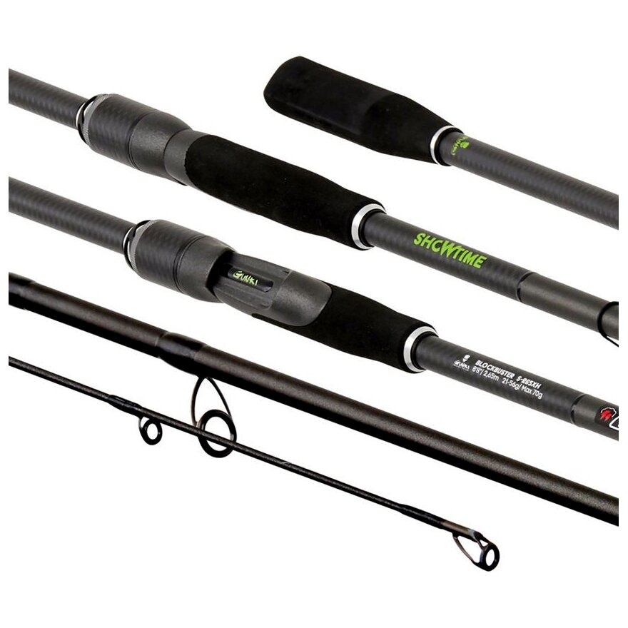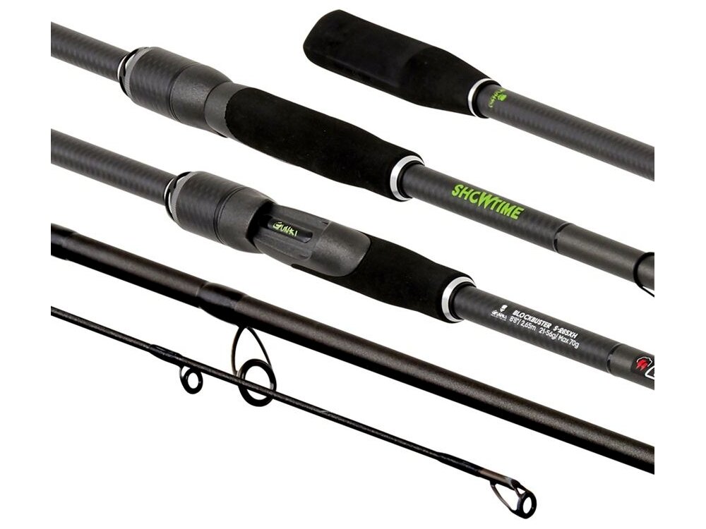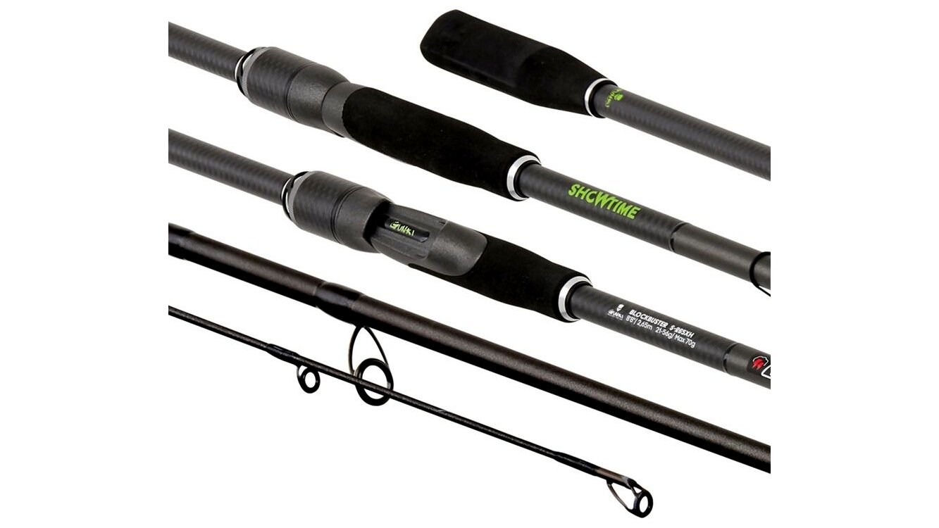 Showtime Block Buster S 250XXH: hossz 250 cm, tagok száma 1+1, dobósúly 42–140 g (max. 180 g), szállítási hossz 207 cm, súly 169 g, gyűrűk száma 9.
