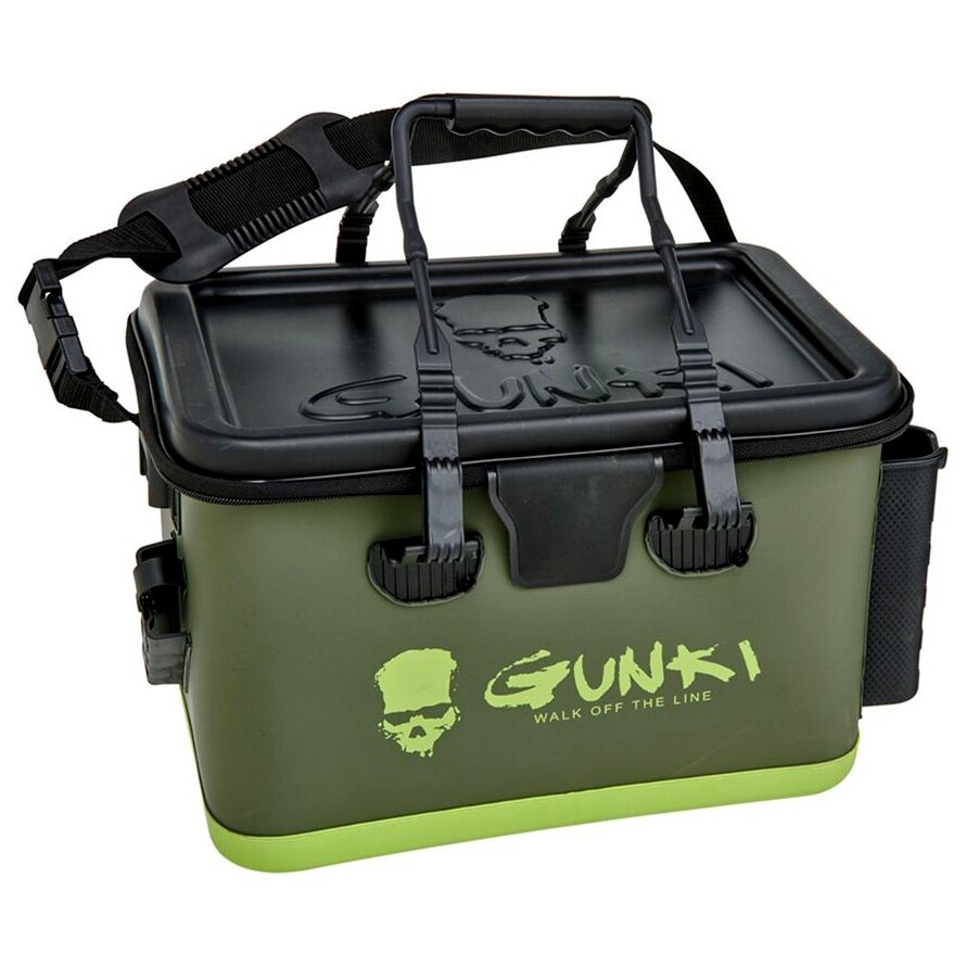 A Gunki Hard Lid 40 vízálló táska 1,5 mm-es EVA anyagból készült, amely tartós és megbízhatóan védi a tartalmát a víztől. A HARD LID 40 modell megerősített falakkal és csúszásgátló betétekkel ellátott aljjal rendelkezik. A masszív, átfedéses fedele védi a belső teret az esőtől, és munkafelületként is szolgál - a fedél széle alkalmas a SAFE BAG LID vagy egy 35×22 cm-es doboz tárolására. A levehető és állítható vállpánt csipesszel biztosítja a kényelmet és a biztonságot hordozás közben, az ergonomikus fogantyú pedig megkönnyíti a kezelést. A SAFE BAG PM/MM/GM/LID táskákat kifejezetten ehhez a modellhez tervezték, és lehetővé teszik a felszerelés (külön megvásárolható) áttekinthető és rugalmas rendszerezését. Két bottartó és egy fogózseb kiemeli, hogy ez a táska ideális a csónakból, kajakból, SUP-ból vagy a partról horgászók számára. Méretek: 40×26×26 cm.