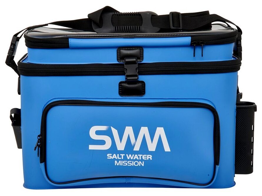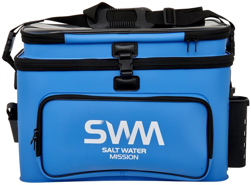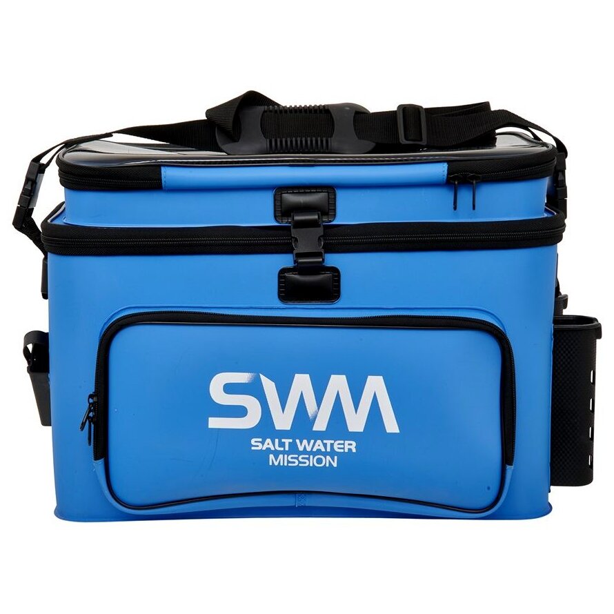 A BIG SPACE modellsorozat GUNKI SWM (Salt Water Mission) vízálló táskája kifejezetten műcsalikkal történő tengeri horgászathoz készült. 1,5 mm és 1 mm vastag EVA anyag kombinációjából készült, amely tartós és megbízhatóan védi a felszerelést a nedvességtől. A modell egyedisége a kétszintes elrendezésében és a nagy tárolóhelyében rejlik. Az alsó főrekesz tárolóhelyként szolgál, amely hatékonyan rendszerezhető a SAFE BAG PM/MM/GM/LID (külön megvásárolható) segítségével. A felső, átlátszó fedéllel ellátott réteg munkafelületként vagy ideiglenes helyként szolgál csalik, fogók vagy egyéb tárgyak tárolására, mielőtt azokat a főrekeszbe helyeznék. Csatokkal szilárdan rögzíthető, így hullámokon is stabil marad. Számos könnyen hozzáférhető zseb található a botok, dobozok, fogók vagy egyéb szükséges felszerelések tárolására. A levehető vállpánt kényelmes hordozást és biztonságot nyújt a hajón. Nagyszerű választás az igényes horgászok számára, akik tökéletes állapotban szeretnék tartani felszerelésüket. Méretek: táska 51,5 × 25 × 30,5 cm / felső doboz 49 × 22 × 6,5 cm.