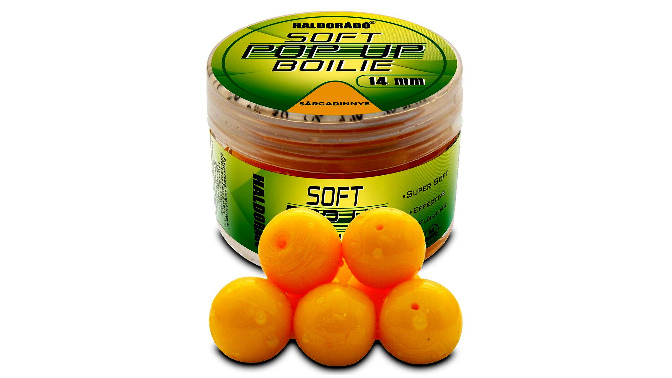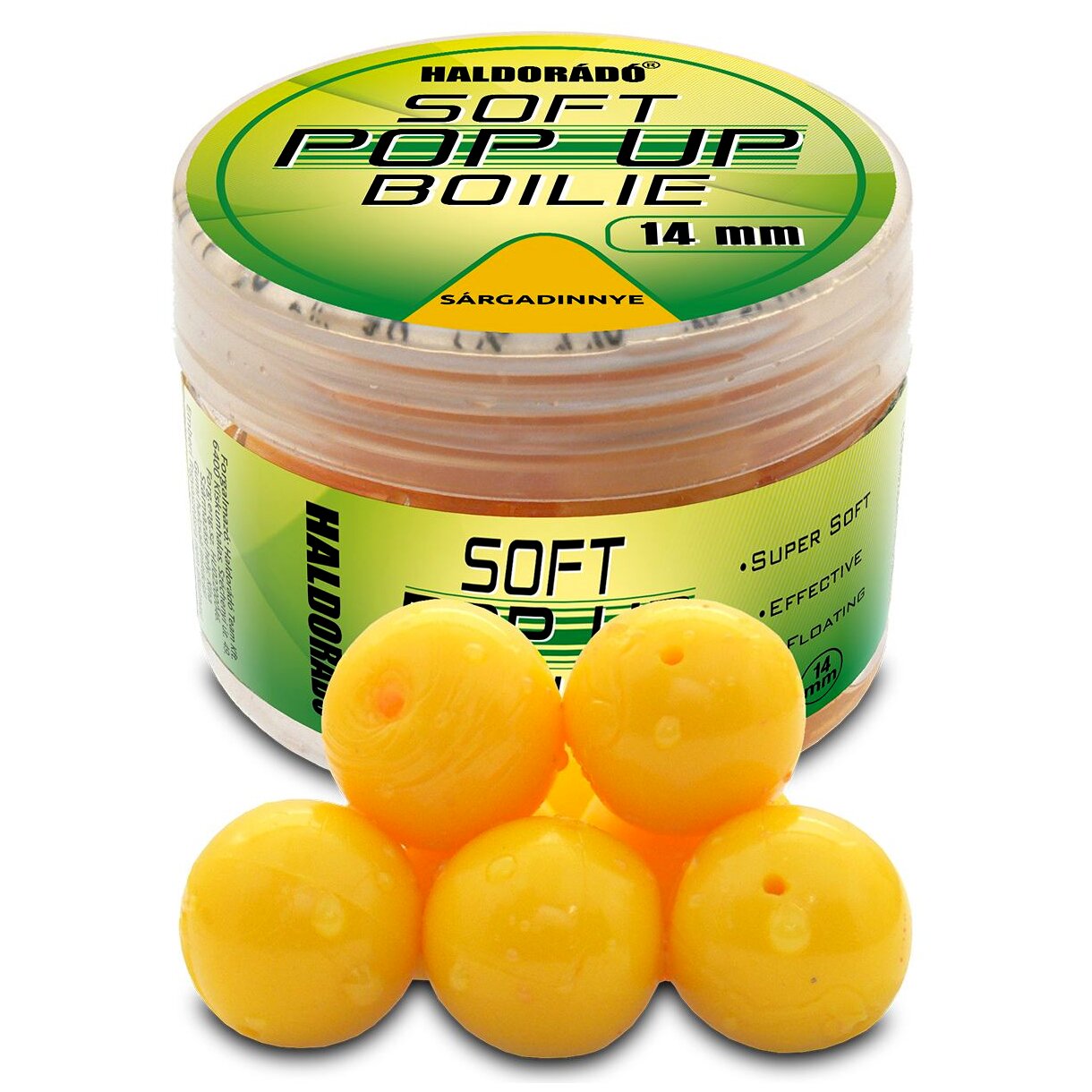 A Super Soft Pop Up Boilie ugyanabból a puha anyagból készült, mint a nagyon népszerű, egyenesen Kínából beszerzett SpéciCorn Pop Up. Ez a golyó formájú, 14 mm átmérőjű csali rendkívül nagy felhajtóerővel bír, így ideális választás a csalikombinációk kikönnyítésére. Mivel anyaga puha, így önmagában is leginkább hajszálelőkén érdemes felkínálni.