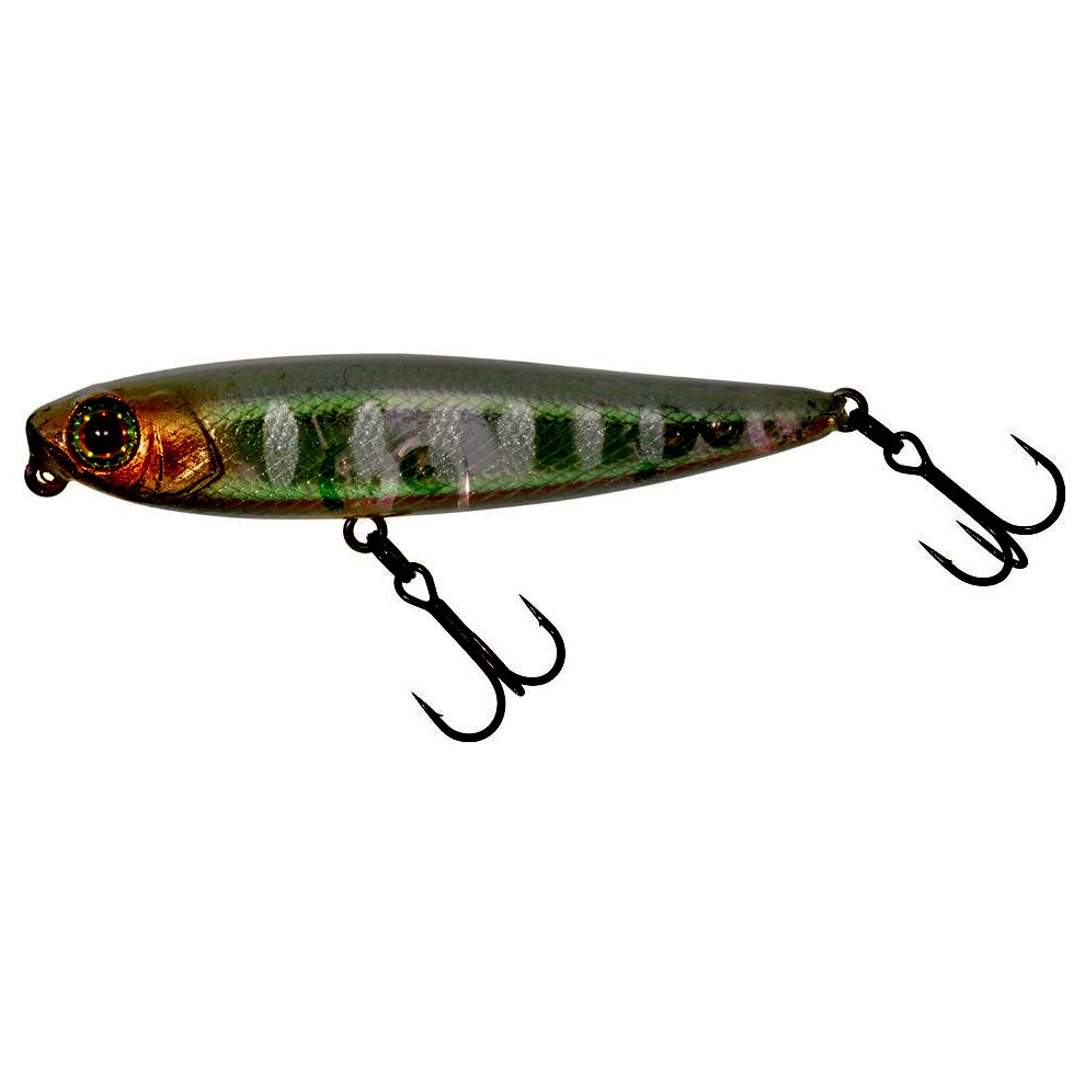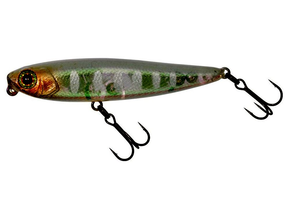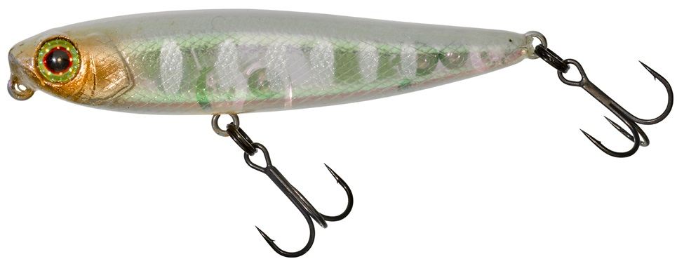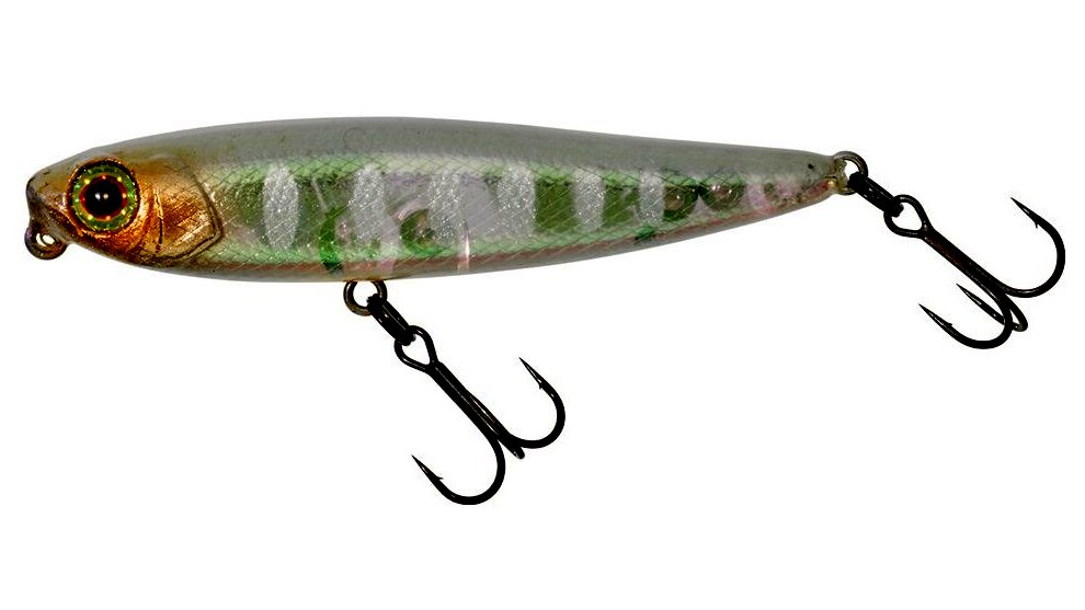 Karcsú vízfelszíni wobbler, kifejezetten süllő, jász, balin és csuka horgászatára. Aktívan működik minden tekerési sebességnél, minden típusú vízen. Horgászat vele nagyon szórakoztató. hossz 5,5 cm súly 3,1 g, vízfelszíni csali.