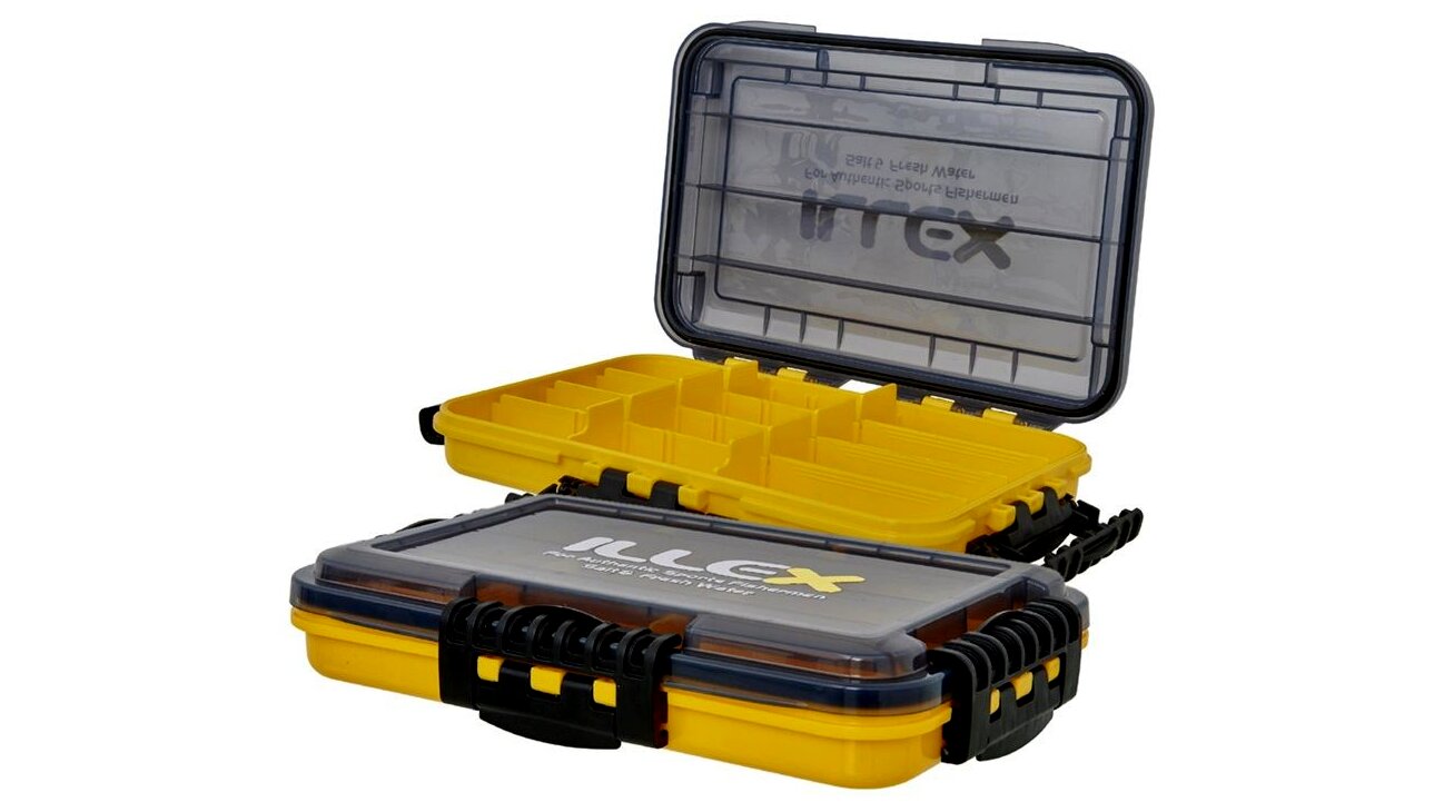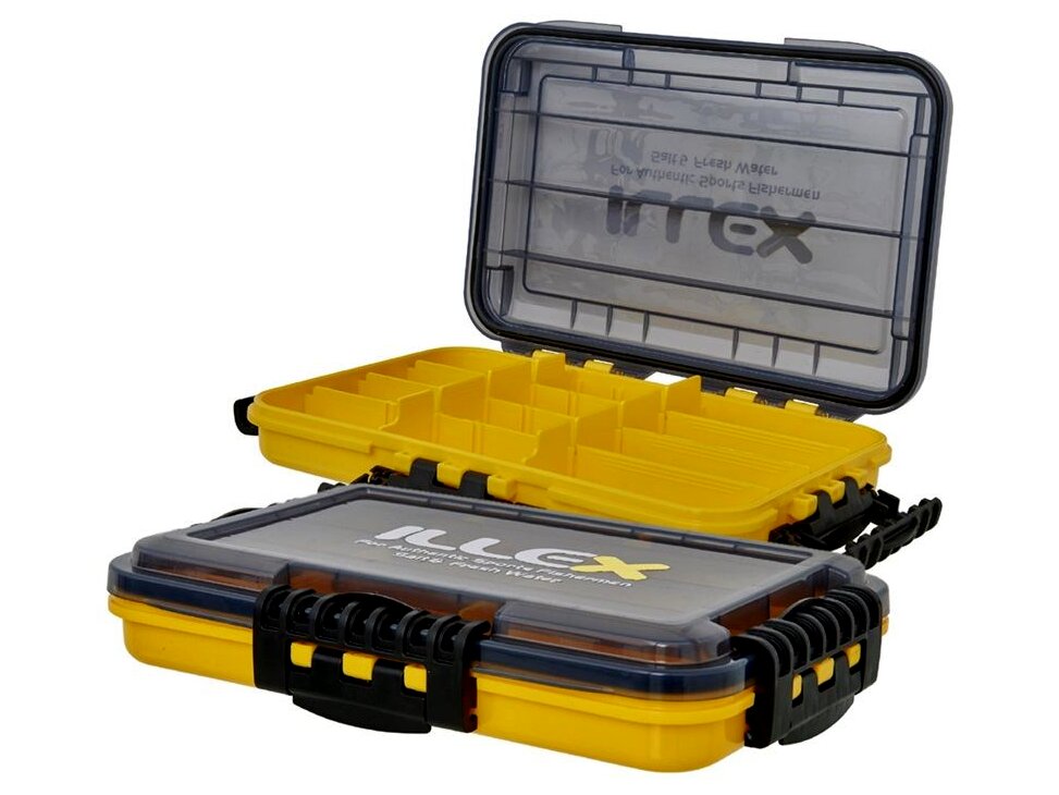 Vízálló doboz csalikra és apró tárgyakra. Összesen 12 állítható rekeszt tartalmaz. Négy záróelem vízálló fedéllel megakadályozza, hogy víz jusson a dobozba. Ha a doboz nincs tele nehéz tárgyakkal, akkor a felszínen úszik, ha váratlanul a vízbe esik. Méretek 27x18x4,8 cm.