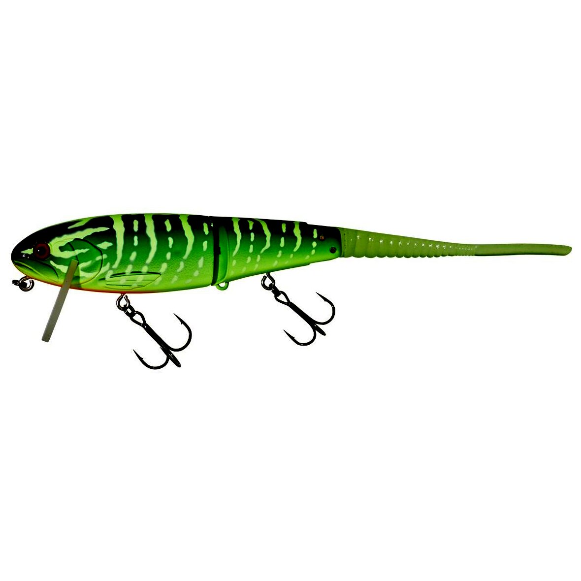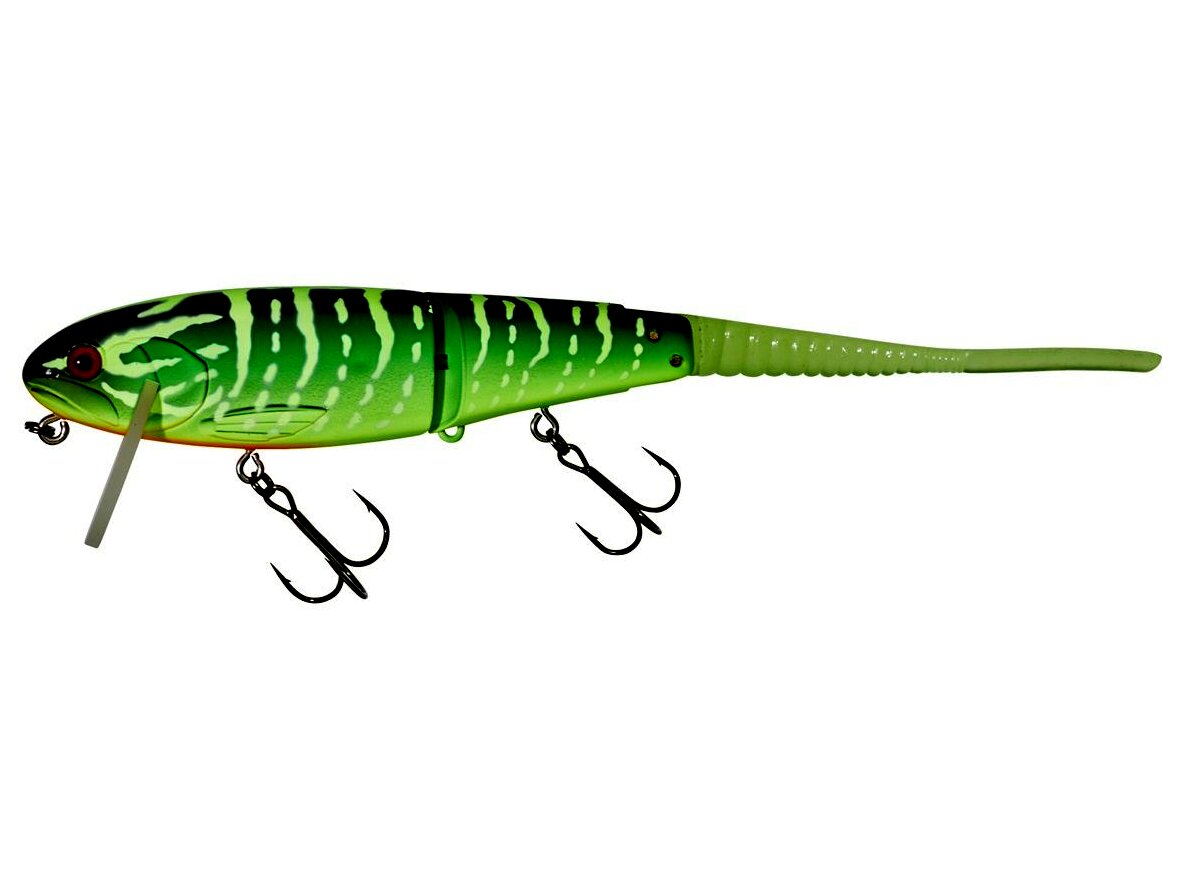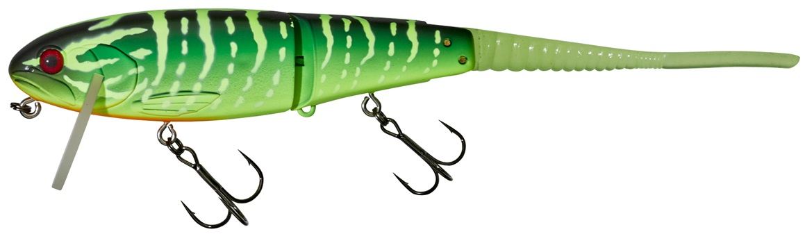 A Flat Bone Clicker egy „Jointed Big Bait” típusú wobbler, amely lassú vezetés esetén is erős gördülő mozgással tűnik ki. Az ízelt testnek, a pengének és a gumifaroknak köszönhetően a csali minimális oldalirányú kitéréssel „Walking the Dog” módszerrel is vezethető. Ez ideális akadók közvetlen közelében vagy rossz körülmények között történő horgászathoz, amikor a ragadozók óvatosak és rejtőzködnek. Sima vezetés esetén a wobbler erős mozgást generál, amely megbízhatóan vonzza a ragadozók figyelmét még nagyobb távolságból is. A csali különösen alkalmas csuka, harcsa és nagy süllő horgászatára. Egyes színek UV-pontokat tartalmaznak a még nagyobb irritáció érdekében. Hossz 220 mm, súly 48 g, süllyedési mélység 0–0,3 m+, úszó csali.