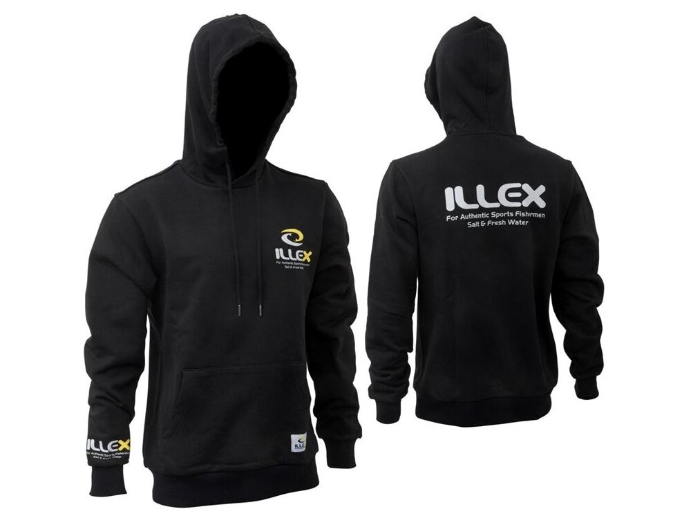 A fekete ILLEX kapucnis pulóver ideális választás a hidegebb napokra. A mellkason és a bal csuklón található logó stílusos megjelenést kölcsönöz, a húzózsinór lehetővé teszi a kapucni beállítását, a praktikus kenguruzseb pedig rengeteg helyet biztosít a dolgok tárolására. Összetétel: 52% pamut, 48% poliészter, súly: 310 g/m2.