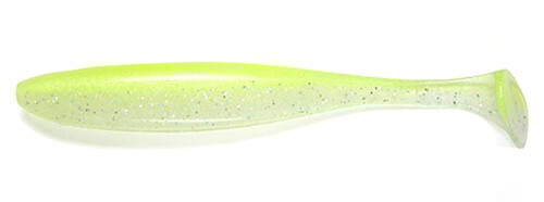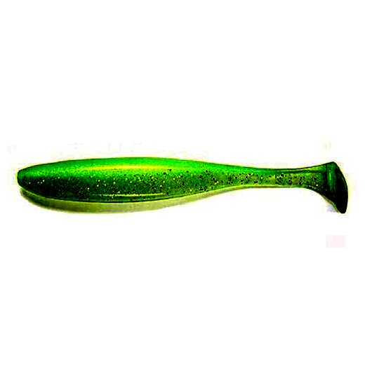 A Keitech Easy Shiner egy korongfarkú gumihal, ami a Shad Impact és a Swing Impact csalik hibridje. Ez a kishal még lassú bevontatáskor is csábítóan billeg egyik oldalról a másikra, a testhez képest nagynak mondható korong faroknak köszönhetően. Így az Easy Shiner a korong végződésű farok miatt, ami még veret is, fokozva a rezgést és a látványt a ragadozók számára ? az ?aktív mozgású gumihalak? fajtájába sorolódik. A test szerkezetileg két részből áll: egy könnyű felső részből és egy nehéz, sóval átitatott alsó részből. Alul és felül az offset horog számára bemélyedések találhatóak, amik lehetővé teszik az akadós és növénnyel benőtt vizekben is a nyugodt és eredményes horgászatot. Egyedi anyagösszetétele és ízesítése, mely formuláknak fő alapja a tintahal vagy rák aroma, valamint a textúrába kevert sók a titka ezeknek a csaliknak. Ez a forma és ízesítés még a legpasszívabb ragadozót is kapásra ösztönzi.