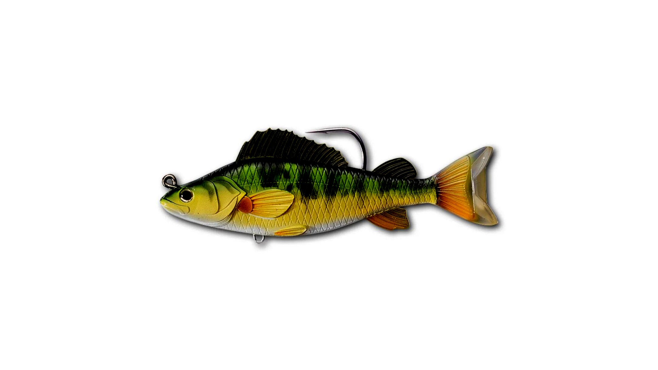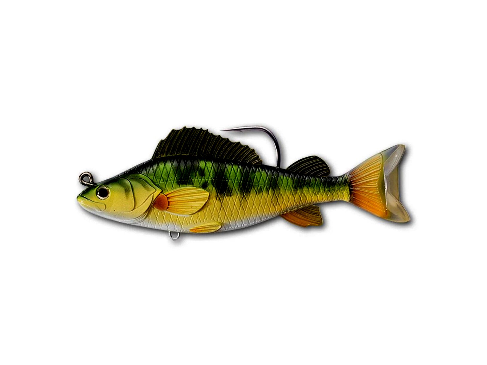 A vizek egyik leggyakoribb táplálékforrása, a Yellow Perch Swimbait a sügér- és süllőhorgászok nagy kedvence. Feszes mozgásának és közepesen lassú süllyedési sebességének köszönhetően ideális hínárok tetején és vízinövények körül horgászni. Ajánlott. csukára, sügérre, süllőre és más halakra.