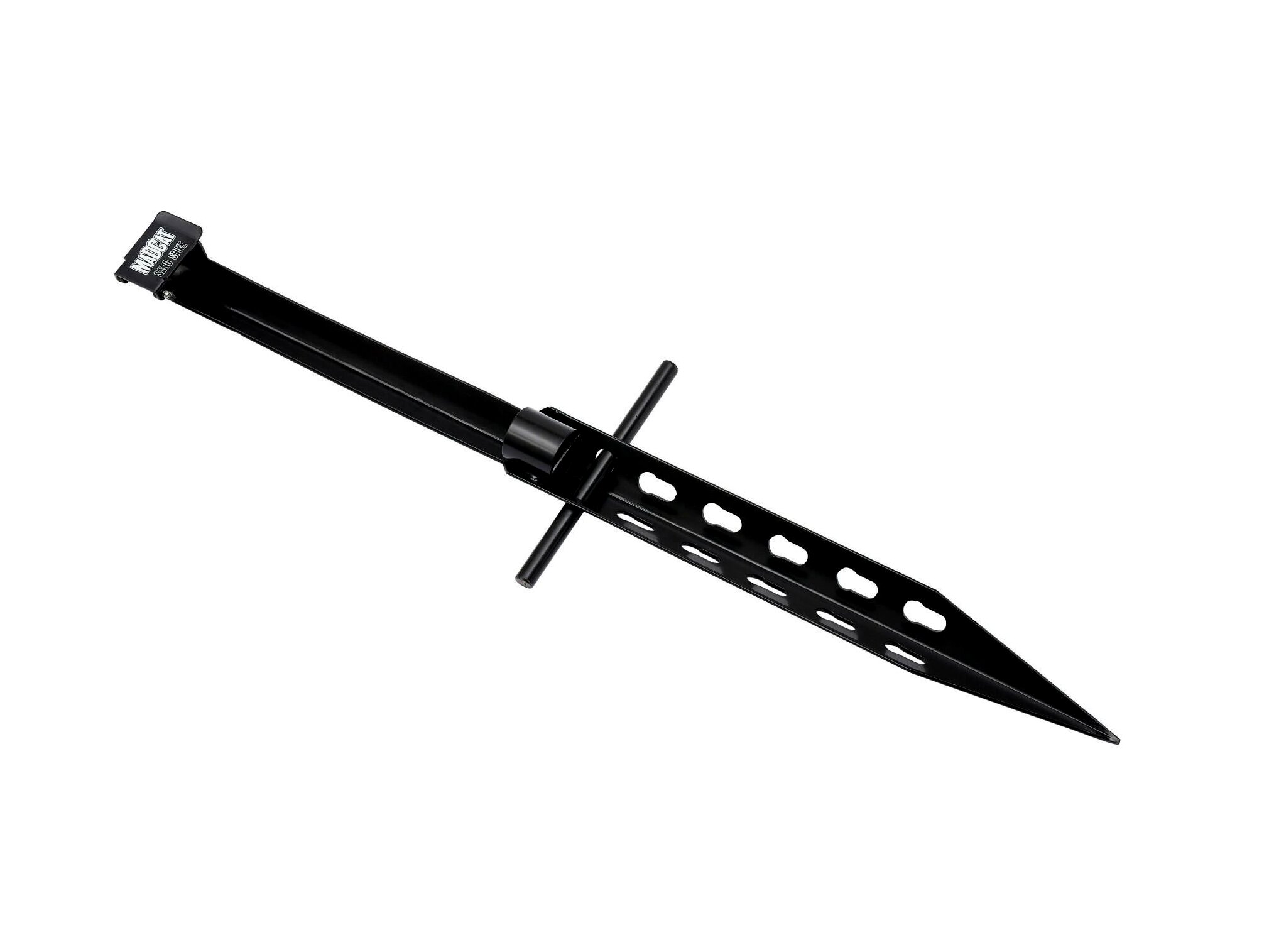Erős, csaknem egy méter hosszú leszúrható bottartó, rugós rögzítővel, amely elég szoros ahhoz, hogy megakadályozza a bot kiesését, de elég laza ahhoz, hogy a bot gyorsan kivehető legyen kapás esetén. Egy extra hegyes leszúróval és egy fém fogantyúval, amely lehetővé teszi az extra mélyre (és stabilan) való leszúrást. A fegyvercsőhöz hasonló lyukak a súlycsökkentést szolgálják.