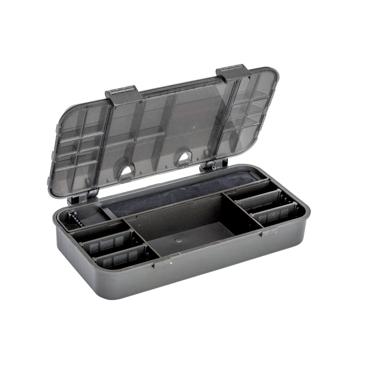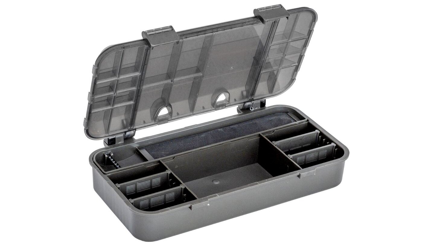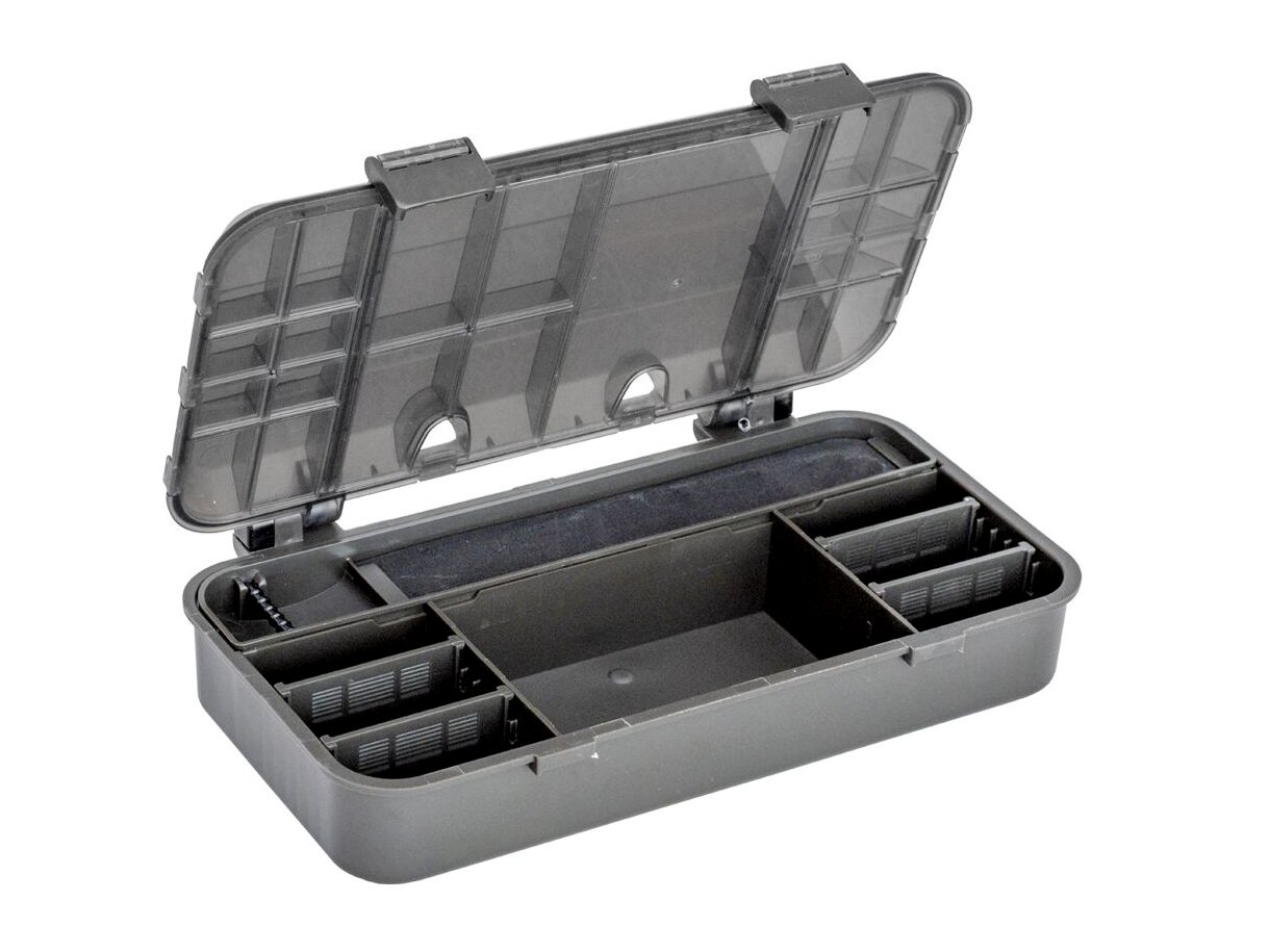 A Marshal RS242 pontyozó doboz kompakt és praktikus tárolóeszköz, amely kifejezetten a pontyhorgászok számára készült. A 24x12,5x5,5 cm-es méret ideális a kisebb horgászkellékek, például horgok, forgók, gumiütközők és egyéb apró kiegészítők rendszerezett tárolására. Több rekeszes kialakítása segít a gyors átláthatóságban és a kényelmes használatban, így mindig kéznél lesz, amire szükséged van. A strapabíró, időjárásálló műanyagból készült doboz hosszú élettartamot és megbízhatóságot biztosít még a legkeményebb körülmények között is. Ez a kompakt doboz tökéletes választás, ha könnyen hordozható, mégis praktikus tárolási megoldásra van szükséged.