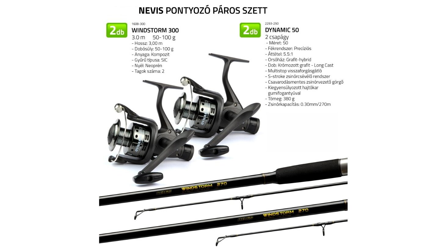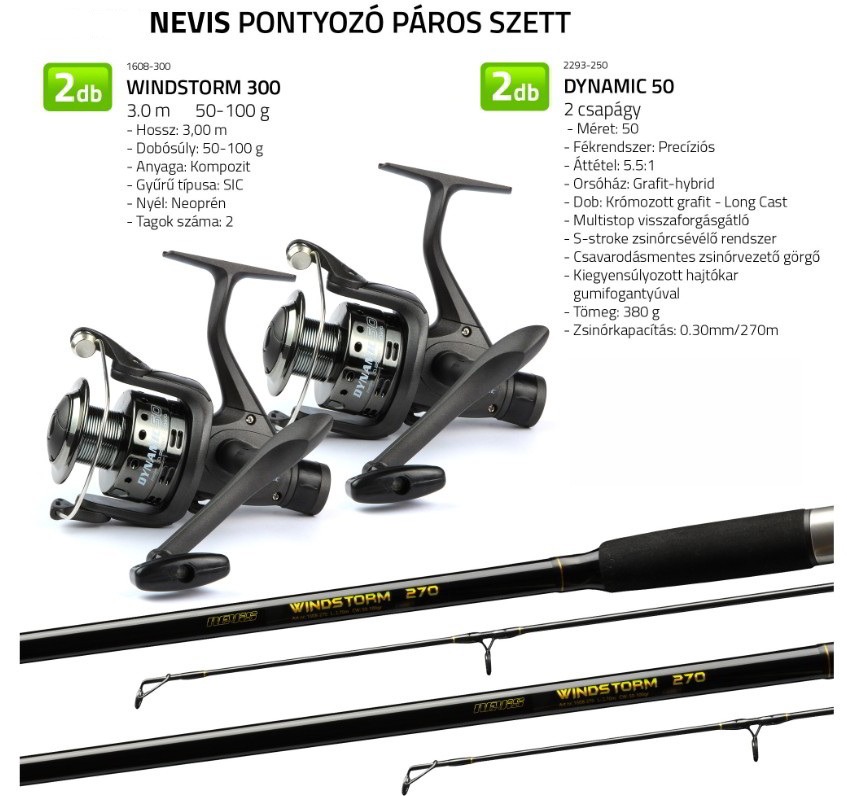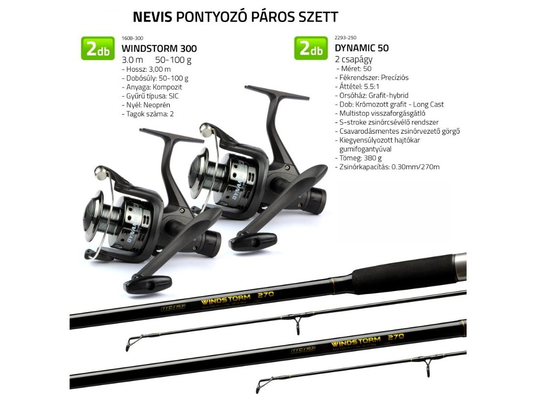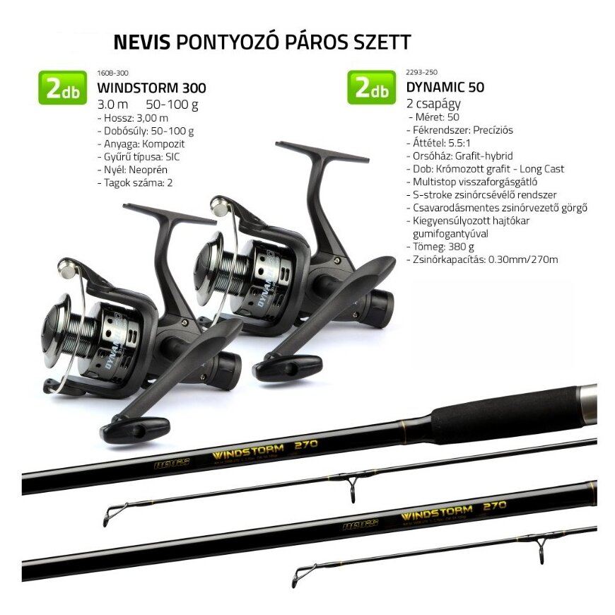 A Nevis pontyozó páros szett ideális választás azok számára, akik egy kedvező árú, mégis jól használható komplett felszerelést keresnek pontyhorgászathoz. A szett két darab összehangolt botot és orsót tartalmaz, így tökéletes megoldás kezdőknek vagy azoknak, akik egyszerre több bottal szeretnének horgászni. A szettet úgy állították össze, hogy az alkalmas legyen állóvizeken és lassabb folyókon történő fenekező pontyozásra. A strapabíró botok és a megbízható orsók kombinációja biztosítja a megfelelő erőt a nagyobb halak fárasztásához, miközben könnyen kezelhető marad.