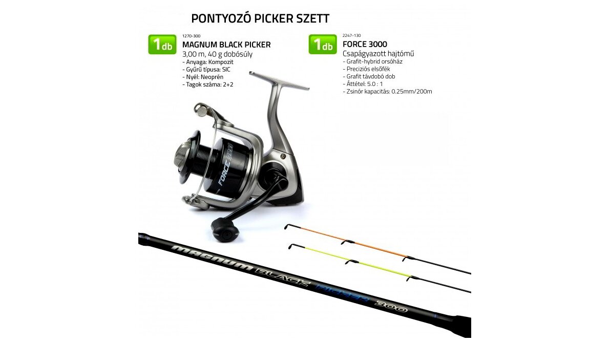 A Nevis Pontyozó Picker szett egy ideális választás mindazok számára, akik szeretnének egy könnyen használható, mégis sokoldalú felszereléssel belevágni a finomszerelékes pontyhorgászatba. A szett gondosan összeválogatott elemekből áll, így kezdők számára kiváló belépő szintet, haladó horgászoknak pedig praktikus, gyorsan bevethető megoldást kínál.