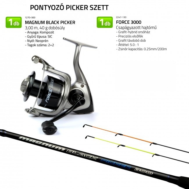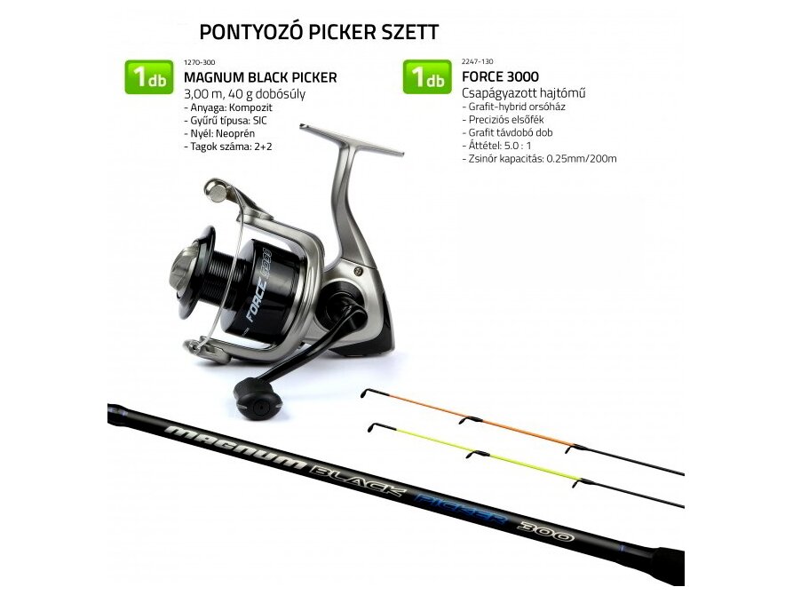 Kiváló választás pontyozáshoz picker módszerrel, kisebb tavakon és csatornákon. Ajánlott kezdőknek első felszerelésként, illetve alkalmi horgászoknak, akik egy egyszerűen használható, komplett szettet keresnek.