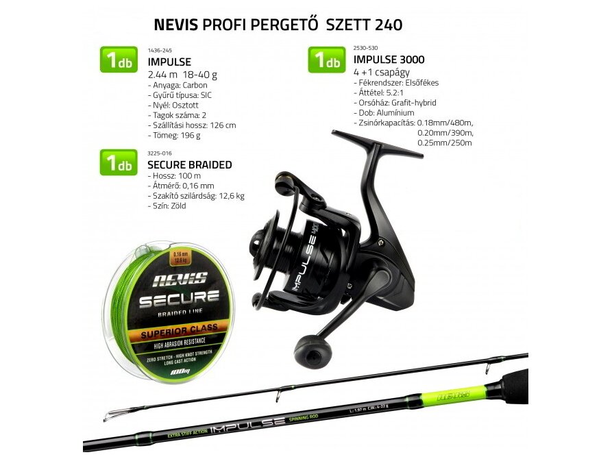 Egy komplett pergető horgászszett, amely ideális választás kezdő és haladó pergető horgászok számára. A szett olyan alapvető felszerelést tartalmaz, amely világos kezdést ad a pergető horgászathoz, beleértve a botot, az orsót és a fonott zsinórt. A szettet úgy tervezték, hogy minden fontos elemet egyetlen csomagban foglaljon magába, így megkönnyíti az indulást a pergető horgászok számára.