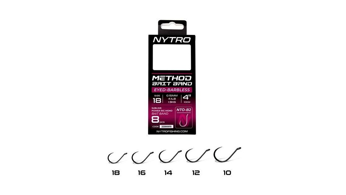 A Nytro Method Latex Bait Band Hooks to Nylon előkék kifejezetten method feeder horgászathoz lettek tervezve, ideális szerelékmegoldást kínálva F1 pontyok, pontyok vagy compók célzott horgászatához. A 10 cm-es előkehosszal kötött szerelékek tartós latex csaligyűrűvel vannak ellátva, így tökéletesek wafters vagy kemény pelletek közvetlen, method kosaras felkínálására.