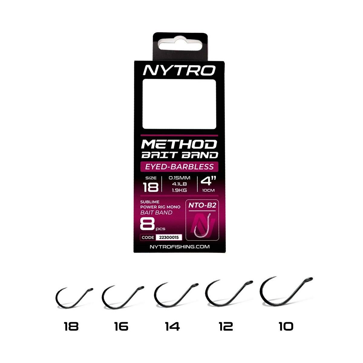 A Nytro Method Latex Bait Band Hooks to Nylon előkék kifejezetten method feeder horgászathoz lettek tervezve, ideális szerelékmegoldást kínálva F1 pontyok, pontyok vagy compók célzott horgászatához. A 10 cm-es előkehosszal kötött szerelékek tartós latex csaligyűrűvel vannak ellátva, így tökéletesek wafters vagy kemény pelletek közvetlen, method kosaras felkínálására.