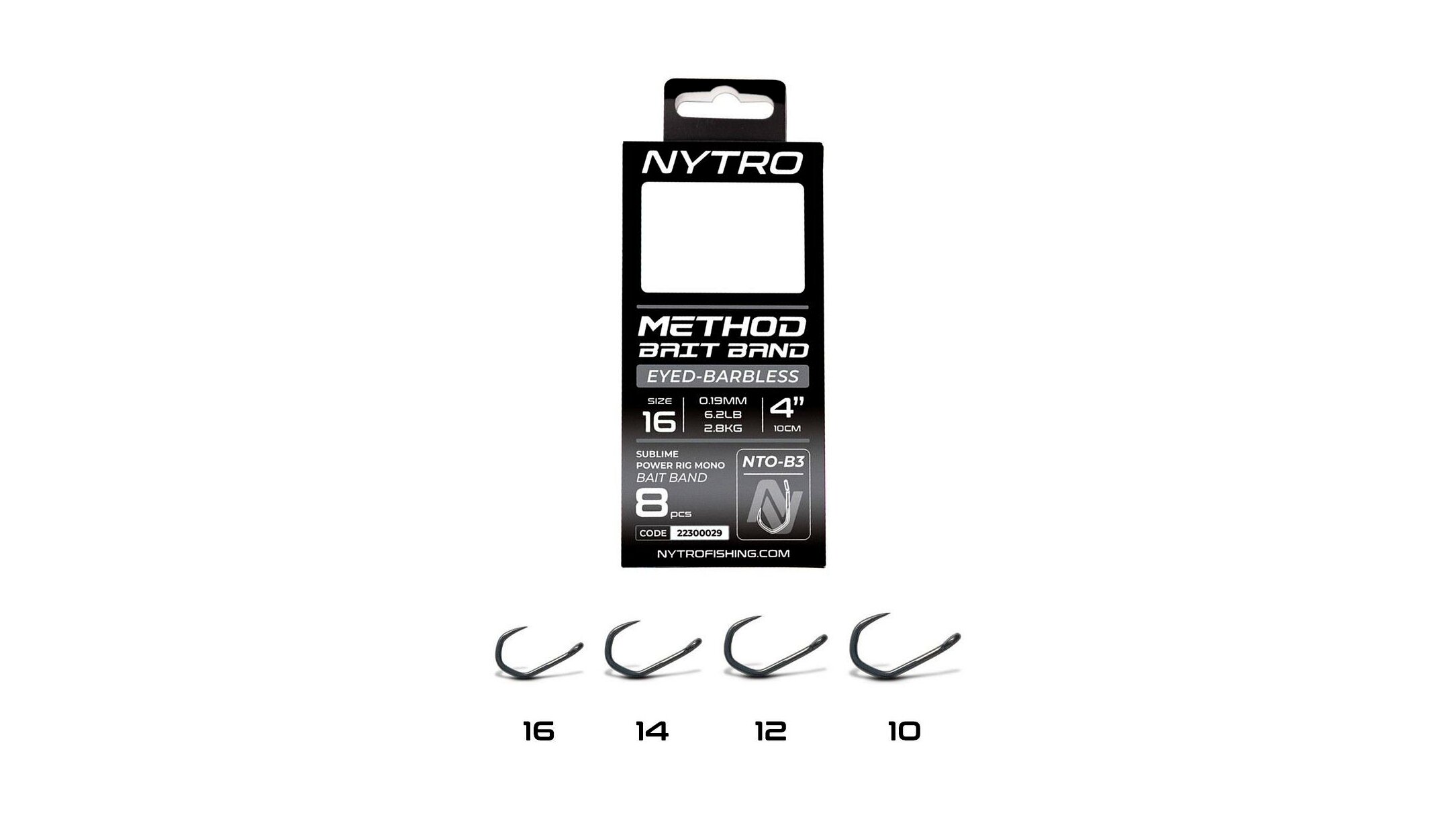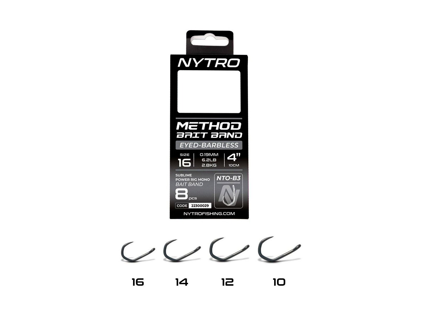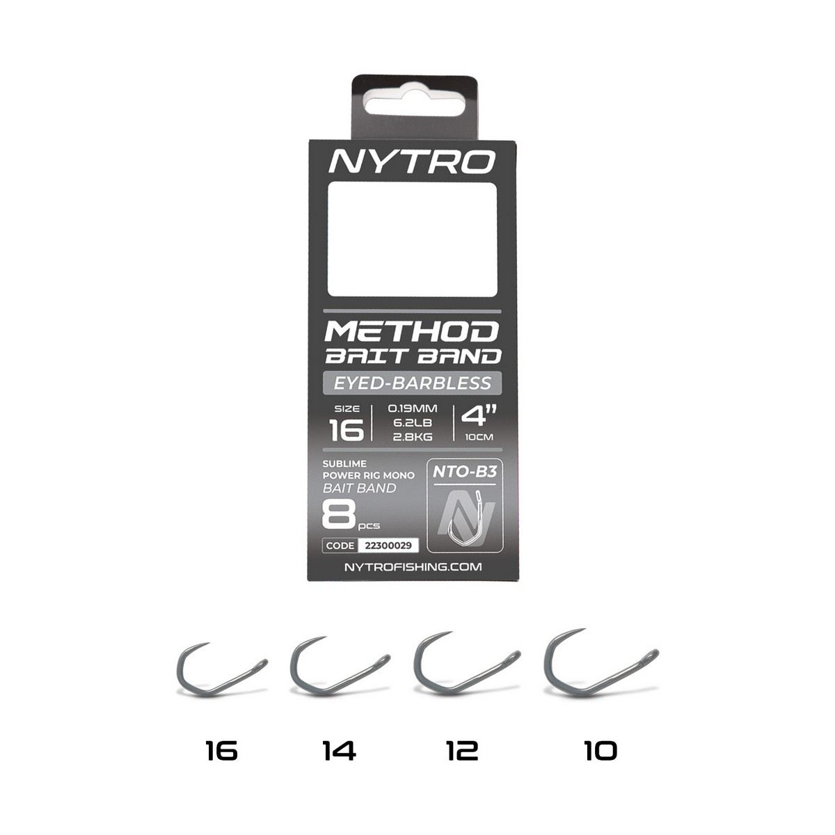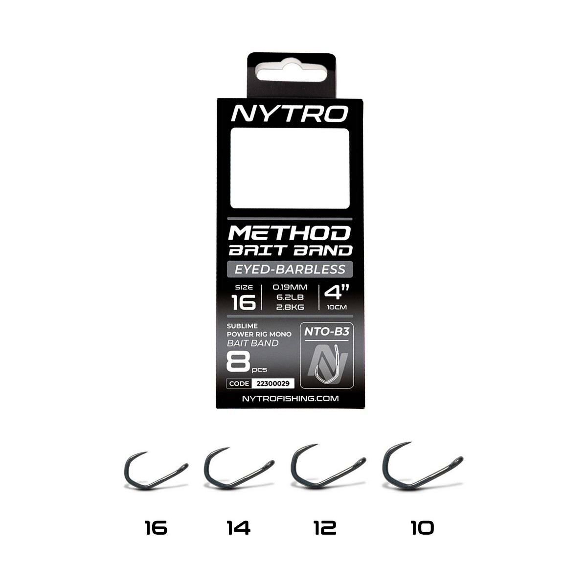 A Nytro Method Latex Bait Band Hooks to Nylon – B3 széria kifejezetten nagytestű, erőteljes halak horgászatára lett tervezve, ahol az erő és a biztos horogtartás alapvető elvárás. A 10 cm-es előkék tartós latex csaligyűrűvel (bait band) vannak ellátva, így ideális választást jelentenek wafters vagy kemény pelletek method kosaras felkínálásához.