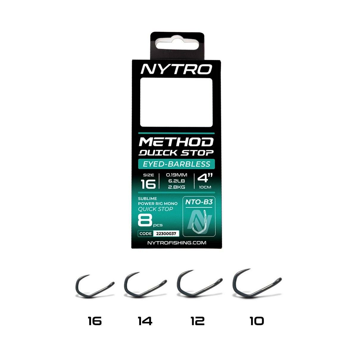 A Nytro Method Quick-Stop Hooks to Nylon – B3 széria kifejezetten nagytestű, keményen küzdő halak célzott horgászatához készült, ahol a megbízható akadás és a kiemelkedő erő elengedhetetlen. A 10 cm-es hosszúságú előkék hurkos Quick-Stop megoldással vannak ellátva, így a csalizás gyors és hatékony – ideális puha pelletekhez, kukoricához vagy egyéb puha csalikhoz method feederes horgászat során.