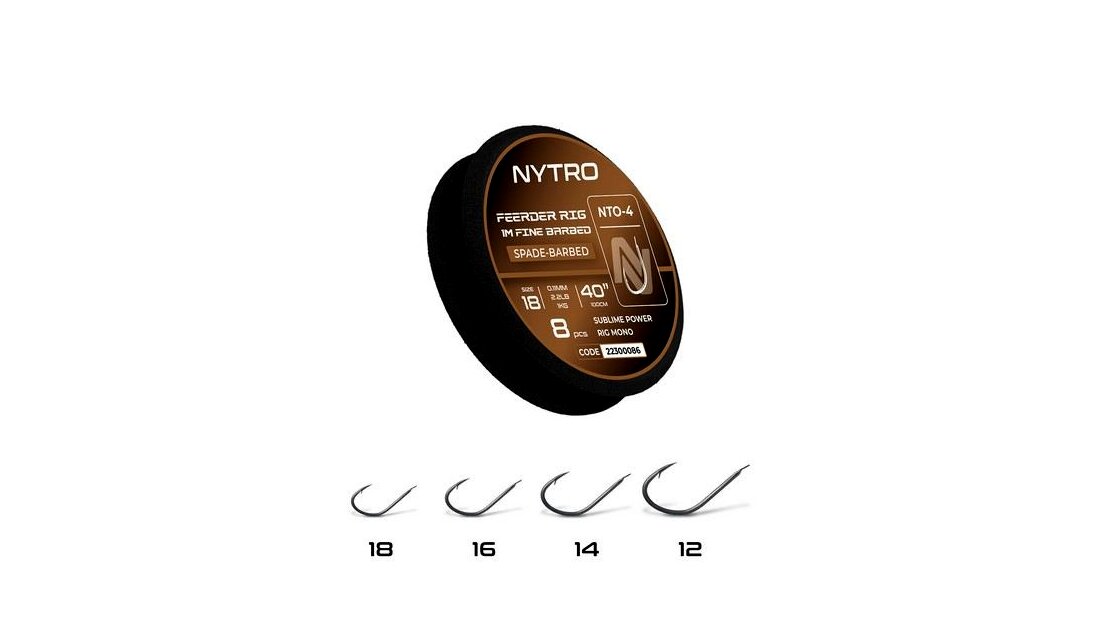 A Nytro Fine Feeder Hooks to Nylon 100 cm hosszúságú előkével készül, maximális rugalmasságot biztosítva a természetes vizeken történő feeder horgászat során. A hosszabb előkehossz ideális a csali természetes felkínálásához, és szükség esetén könnyedén rövidebbre vágható – így mindig alkalmazkodni tudsz a változó parti körülményekhez.