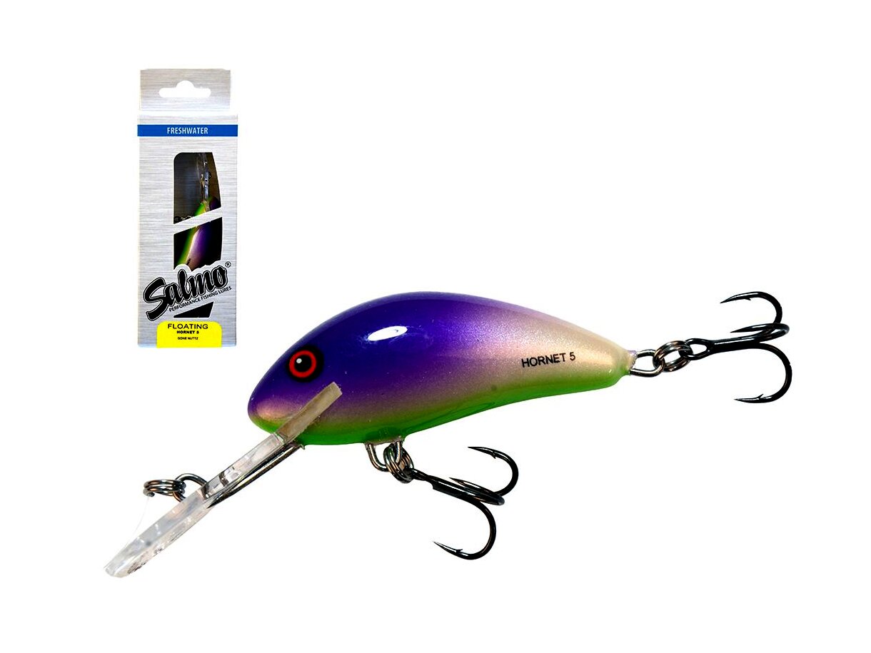 Amióta csak létezik a Salmo család a Hornet típus a legeladottabb, legnépszerűbb változat. Méretét tekintve nem nagy, mégis hihetetlenül eredményesen horgászhatunk vele. Nagyon gondosan készül, komoly precizitás szükséges ahhoz, hogy apró méretben is nagy sebességgel tudjuk vontatni anélkül, hogy kitörjön a számára megszabott útvonalból. Kis súlya ellenére megfelelő felszereléssel jól dobható. Ötféle méretben, háromféle terelőlemezzel, úszó, süllyedő és mélyretörő kivitelben is kapható. Halfajok: pisztráng, sügér, csuka, balin, domolykó Speciális helyek, szituációk: Általánosan talán a legjobban használható típusa a családnak