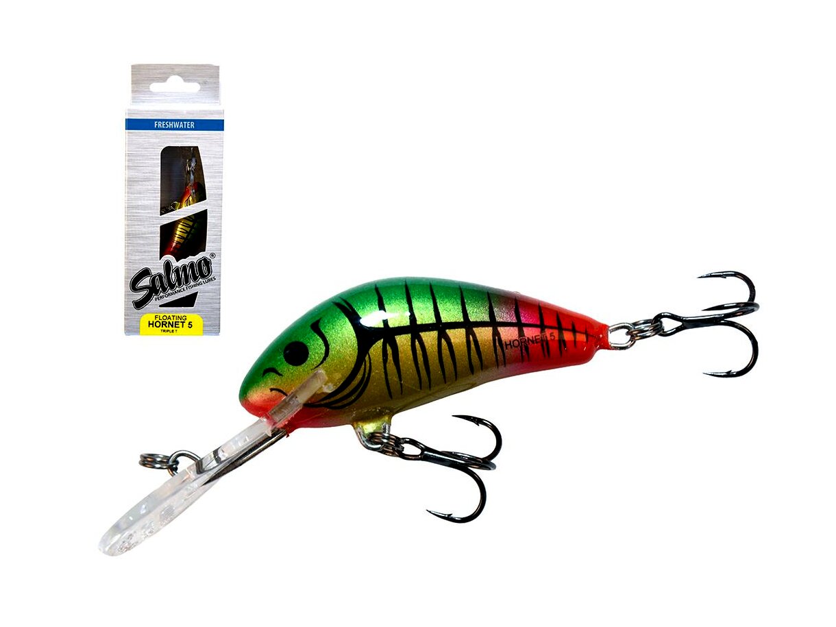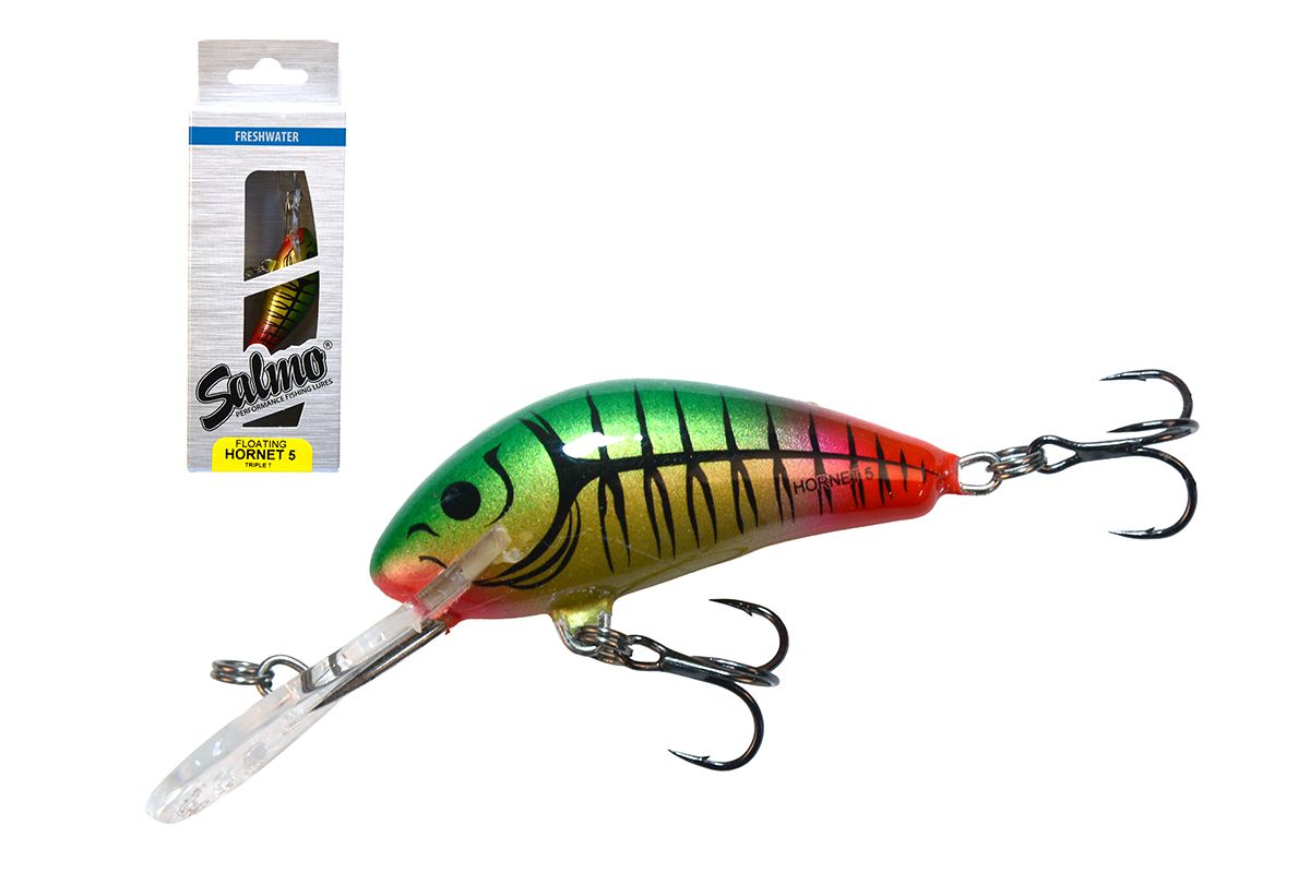Amióta csak létezik a Salmo család a Hornet típus a legeladottabb, legnépszerűbb változat. Méretét tekintve nem nagy, mégis hihetetlenül eredményesen horgászhatunk vele. Nagyon gondosan készül, komoly precizitás szükséges ahhoz, hogy apró méretben is nagy sebességgel tudjuk vontatni anélkül, hogy kitörjön a számára megszabott útvonalból. Kis súlya ellenére megfelelő felszereléssel jól dobható. Ötféle méretben, háromféle terelőlemezzel, úszó, süllyedő és mélyretörő kivitelben is kapható. Halfajok: pisztráng, sügér, csuka, balin, domolykó Speciális helyek, szituációk: Általánosan talán a legjobban használható típusa a családnak