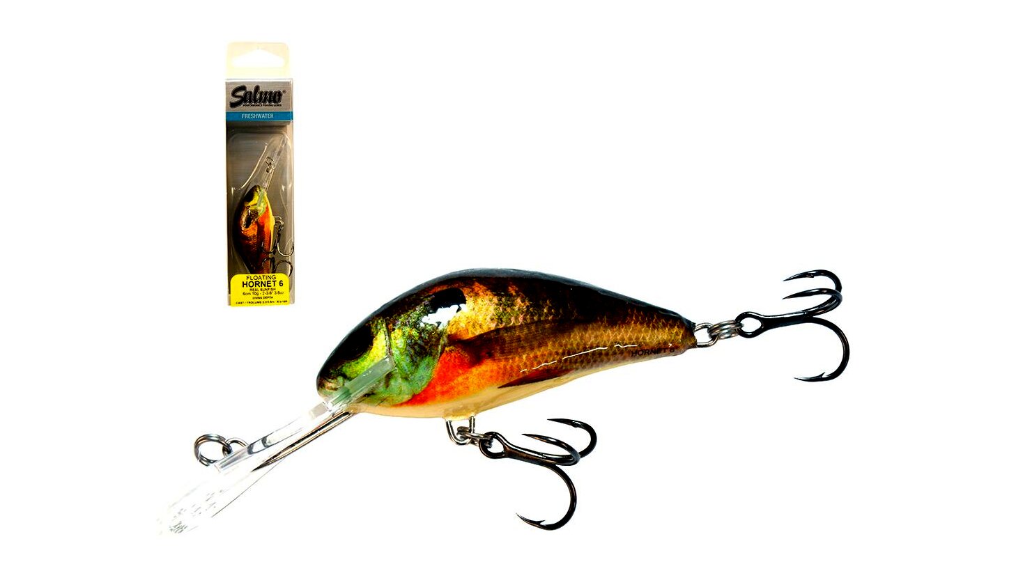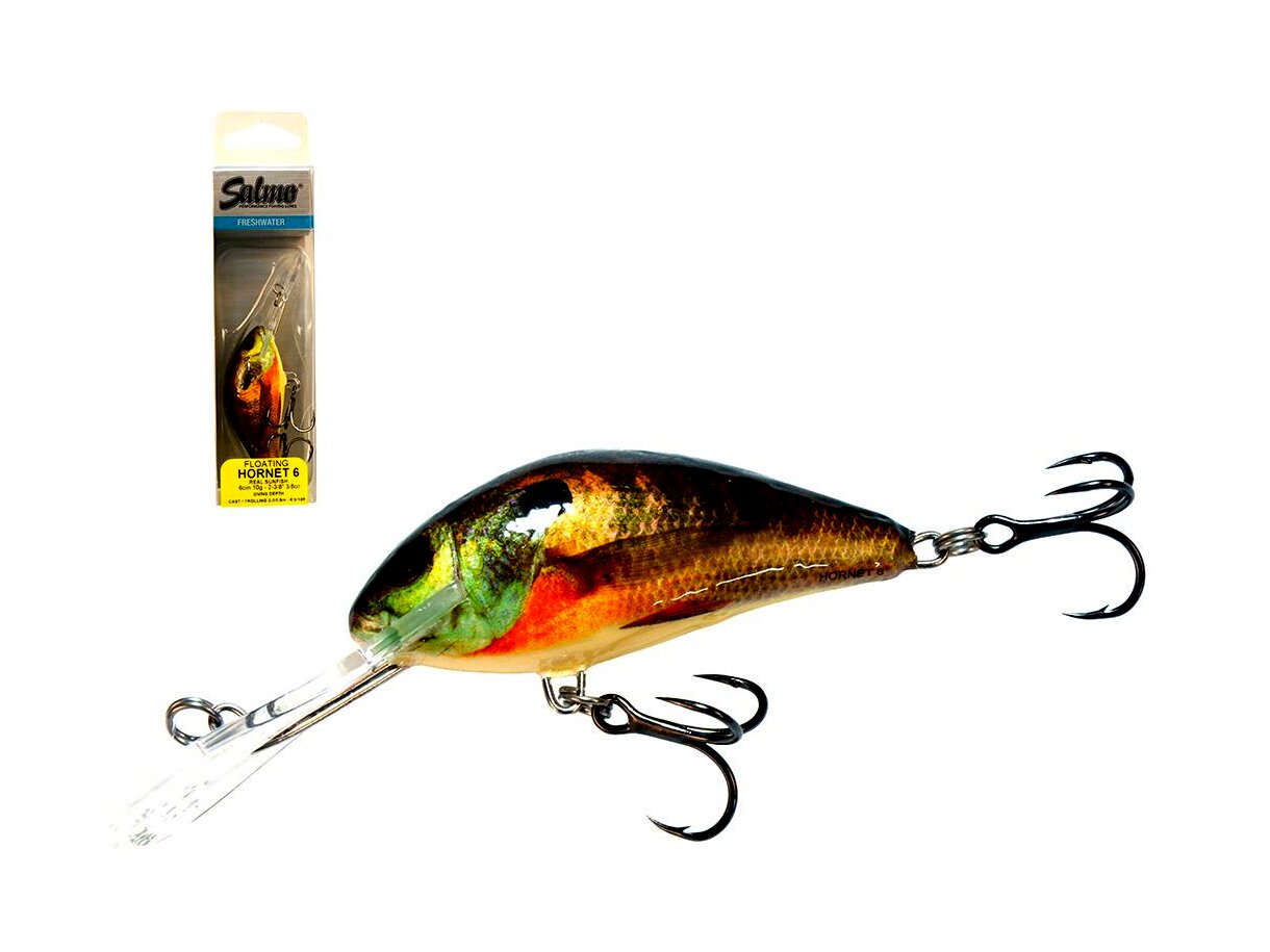 Amióta csak létezik a Salmo család a Hornet típus a legeladottabb, legnépszerűbb változat. Méretét tekintve nem nagy, mégis hihetetlenül eredményesen horgászhatunk vele. Nagyon gondosan készül, komoly precizitás szükséges ahhoz, hogy apró méretben is nagy sebességgel tudjuk vontatni anélkül, hogy kitörjön a számára megszabott útvonalból. Kis súlya ellenére megfelelő felszereléssel jól dobható. Ötféle méretben, háromféle terelőlemezzel, úszó, süllyedő és mélyretörő kivitelben is kapható. Halfajok: pisztráng, sügér, csuka, balin, domolykó Speciális helyek, szituációk: Általánosan talán a legjobban használható típusa a családnak