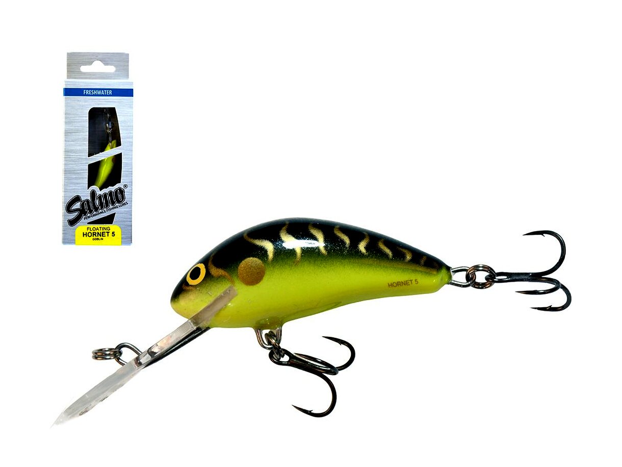 Amióta csak létezik a Salmo család a Hornet típus a legeladottabb, legnépszerűbb változat. Méretét tekintve nem nagy, mégis hihetetlenül eredményesen horgászhatunk vele. Nagyon gondosan készül, komoly precizitás szükséges ahhoz, hogy apró méretben is nagy sebességgel tudjuk vontatni anélkül, hogy kitörjön a számára megszabott útvonalból. Kis súlya ellenére megfelelő felszereléssel jól dobható. Ötféle méretben, háromféle terelőlemezzel, úszó, süllyedő és mélyretörő kivitelben is kapható. Halfajok: pisztráng, sügér, csuka, balin, domolykó Speciális helyek, szituációk: Általánosan talán a legjobban használható típusa a családnak