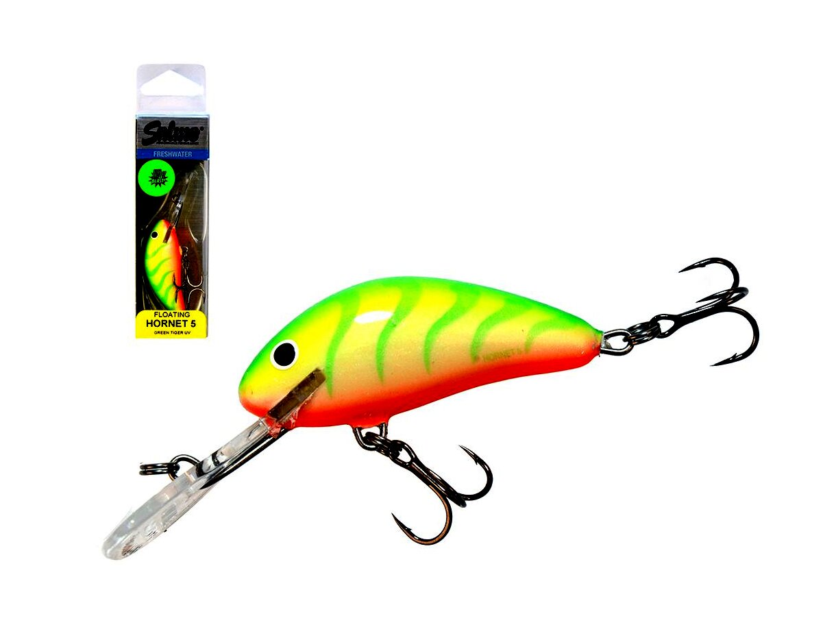 Amióta csak létezik a Salmo család a Hornet típus a legeladottabb, legnépszerűbb változat. Méretét tekintve nem nagy, mégis hihetetlenül eredményesen horgászhatunk vele. Nagyon gondosan készül, komoly precizitás szükséges ahhoz, hogy apró méretben is nagy sebességgel tudjuk vontatni anélkül, hogy kitörjön a számára megszabott útvonalból. Kis súlya ellenére megfelelő felszereléssel jól dobható. Ötféle méretben, háromféle terelőlemezzel, úszó, süllyedő és mélyretörő kivitelben is kapható. Halfajok: pisztráng, sügér, csuka, balin, domolykó Speciális helyek, szituációk: Általánosan talán a legjobban használható típusa a családnak