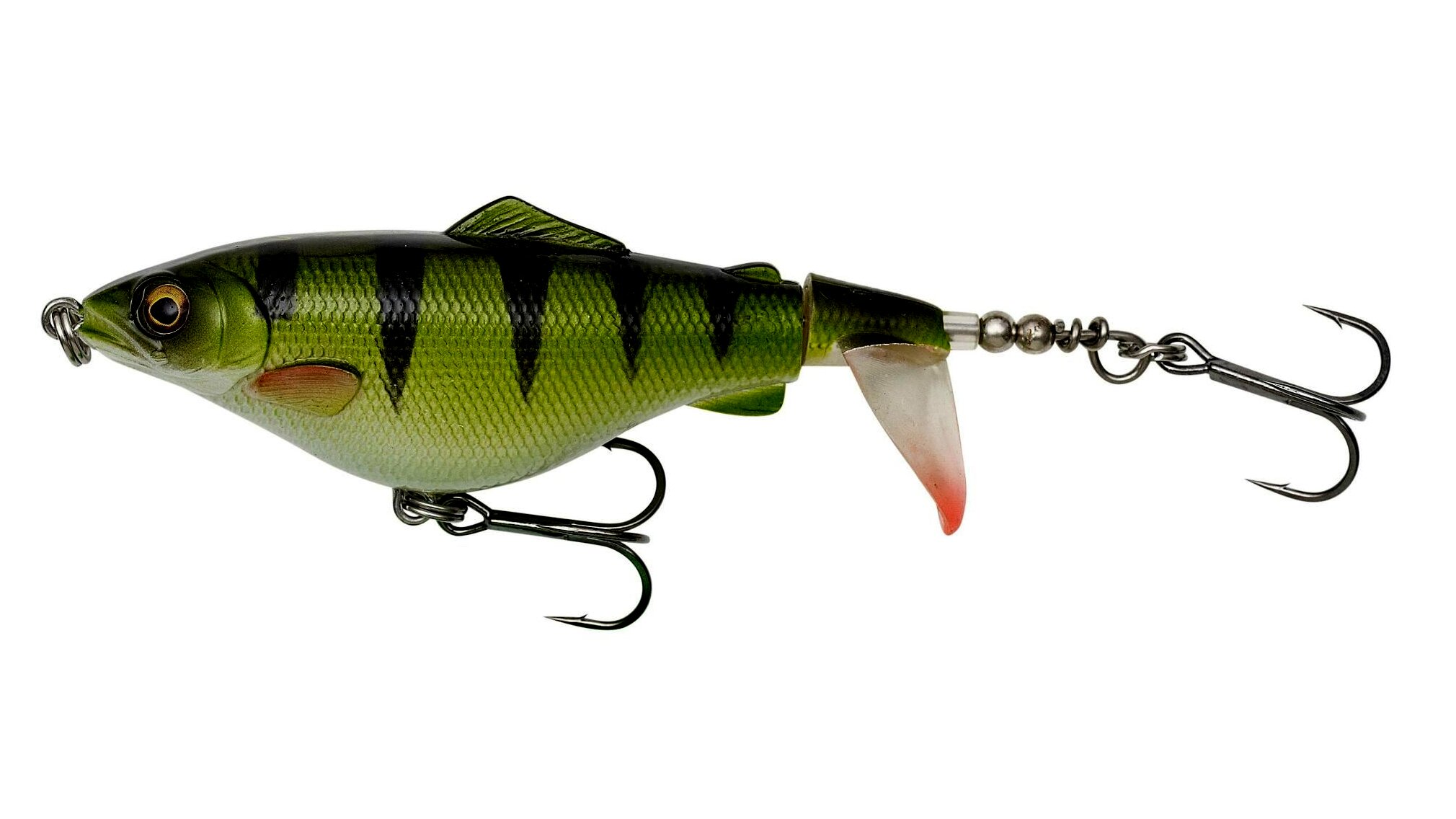 A propelleres farok a vízben hangos csattogó hangot kelt, megtörve a felszínt és buboréknyomot hagyva a csali mögött.”
