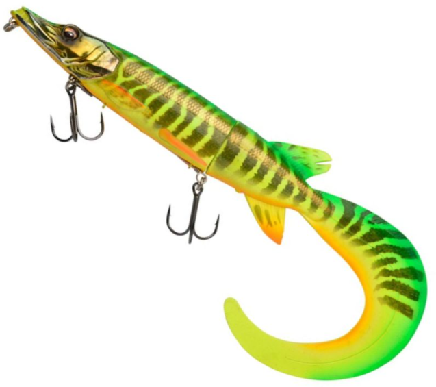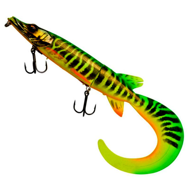 Egy szuper élethű Baby Pike utánzat, tele innovatív megoldásokkal! Az egyedülálló 3D szkenneléssel készült részletek még a legóvatosabb ragadozó halakat is megtévesztik, brutális támadásokat váltva ki. A csavarodó farok extrém lassú tempónál is hatékonyan használható: a csali eleje stabil marad, miközben a farokrész csábító és ingerlő mozgást végez – halálos kombináció a nagy, óvatos csukák ellen! Ha a farkat lefelé csavarod fel, a farokrészre ható felhajtóerő lefelé nyomja a csali fejét, így az egyenletes mélységben úszik a víz alatt. Ha a farkat felfelé csavarod, a lefele ható erő felnyomja a csali fejét, így az a felszín közelében fut, és erőteljes hullámot kelt a víz tetején. Az innovatív release rig lehetővé teszi, hogy a hátsó horog kioldódjon a csali testéből, amikor a hal megakasztásra kerül. A szerelék egy beépített forgóra van rögzítve, így a hal sokkal nehezebben tudja megcsavarni magát a csalin, hogy kitépje a horgot. Ez az okos rendszer a csali puha részét is védi, mivel az nem marad hosszú ideig a fogakkal teli zónában.