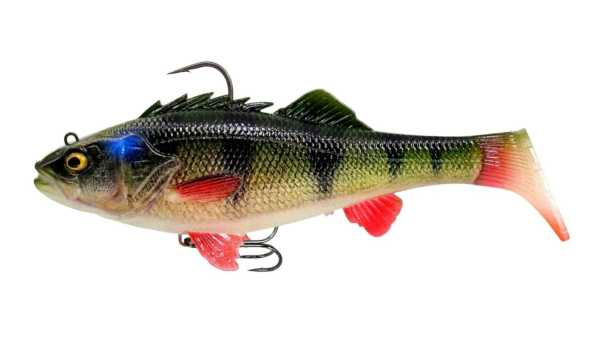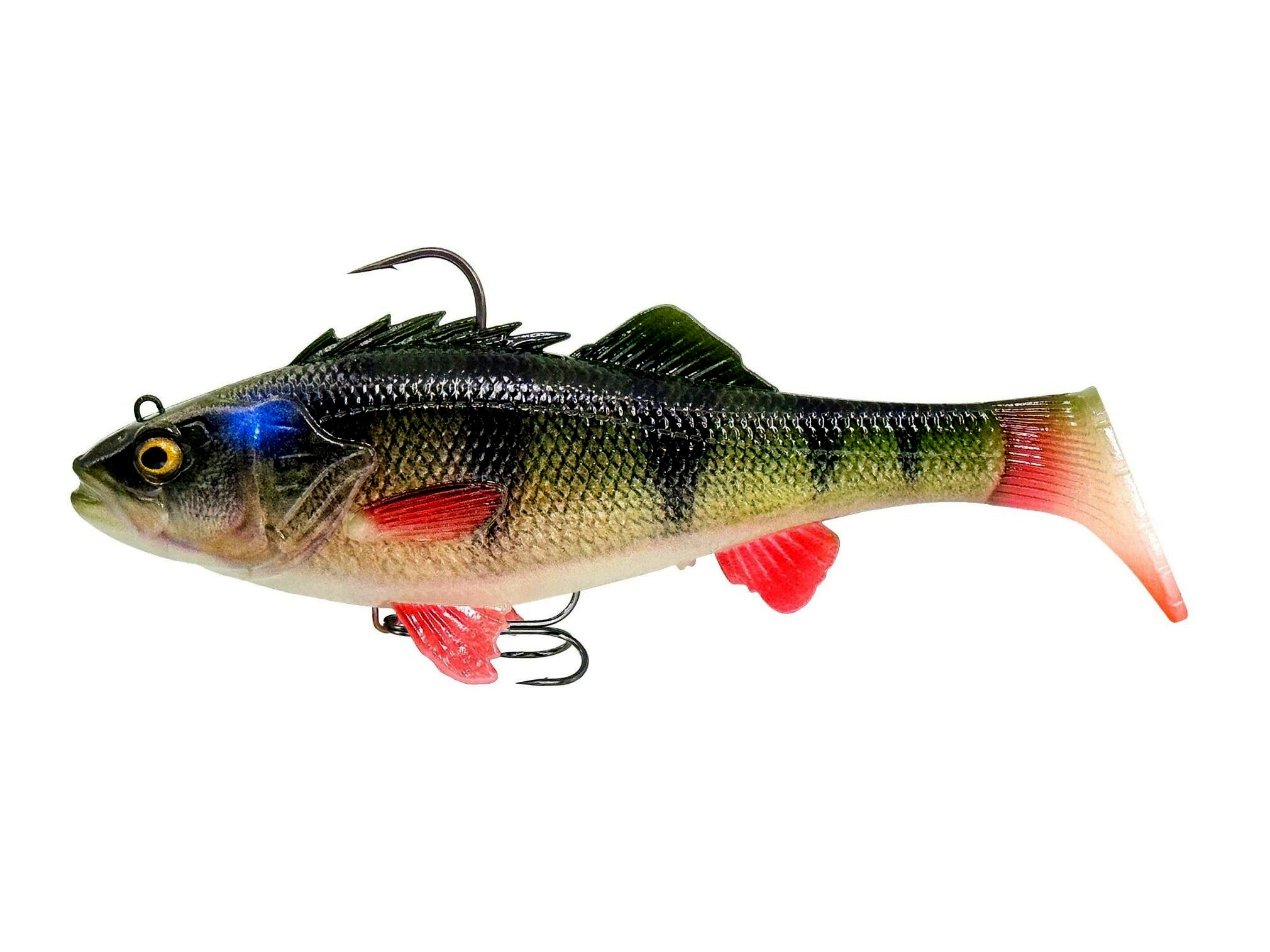 A sügér a nagy csukák egyik legfontosabb zsákmánya, és Európa szinte minden vizében megtalálható, ezért terveztük meg az RTF (Ready to Fish) sügér csalit. Egy valódi sügércsali szkennelése alapján készült, rendkívül valósághű részletekkel, fotónyomtatási technikával és DNS-illat bevonattal. Ennél természetesebb már nem is lehetne! A gyors süllyedés, a puha PVC anyag és a könnyű, de nagyméretű, üvegcsörgővel ellátott farok kombinációjának köszönhetően ez a csali mindig jól fog működni süllyedés közben! Ezért ez a csali egyaránt használható sekély vízben, a bot spiccét kissé felfelé irányítva, de a mély vizekben is az igazi szörnyek keresésére. A nagy farok miatt a csali csábítóan billeg, a farokban lévő csörgő pedig vonzzák a kíváncsi ragadozókat, és segítenek nekik megtalálni a csalit a zavaros vizekben is.