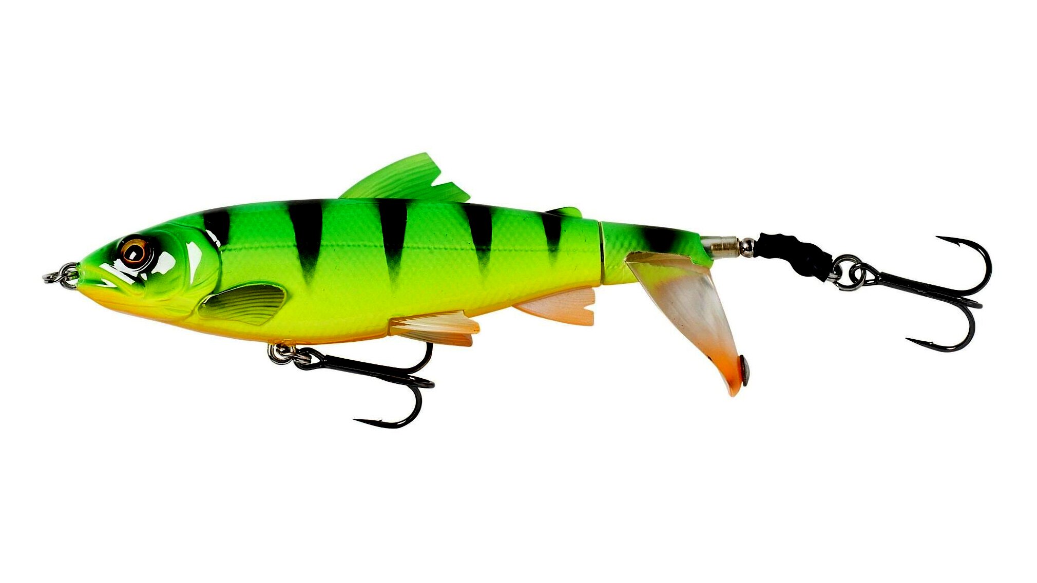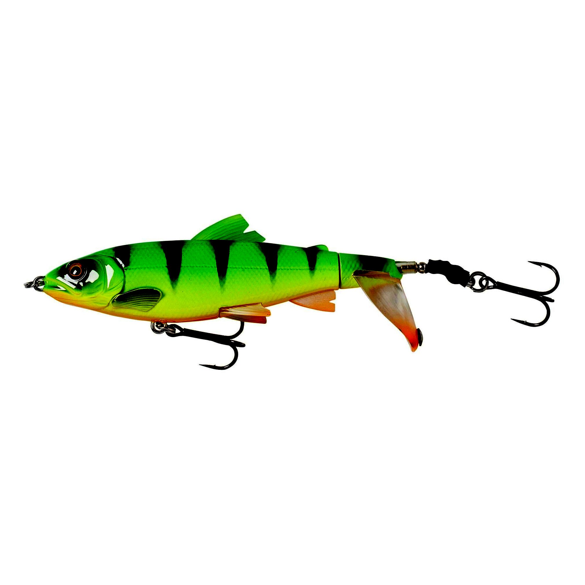 Egy fiatal pisztráng 3D szkennelése alapján készült, szuper részletekkel és élethű sziluettel. A forgó farokrész belecsap a vízbe, hangos buggyogó hangot hallatva, szuper hullámot és buborékcsíkot húzva maga után. A kis fém karika a faroklapáton felerősíti a hangot és vizet fröcsköl, odacsalva a nagy ragadozó halakat.