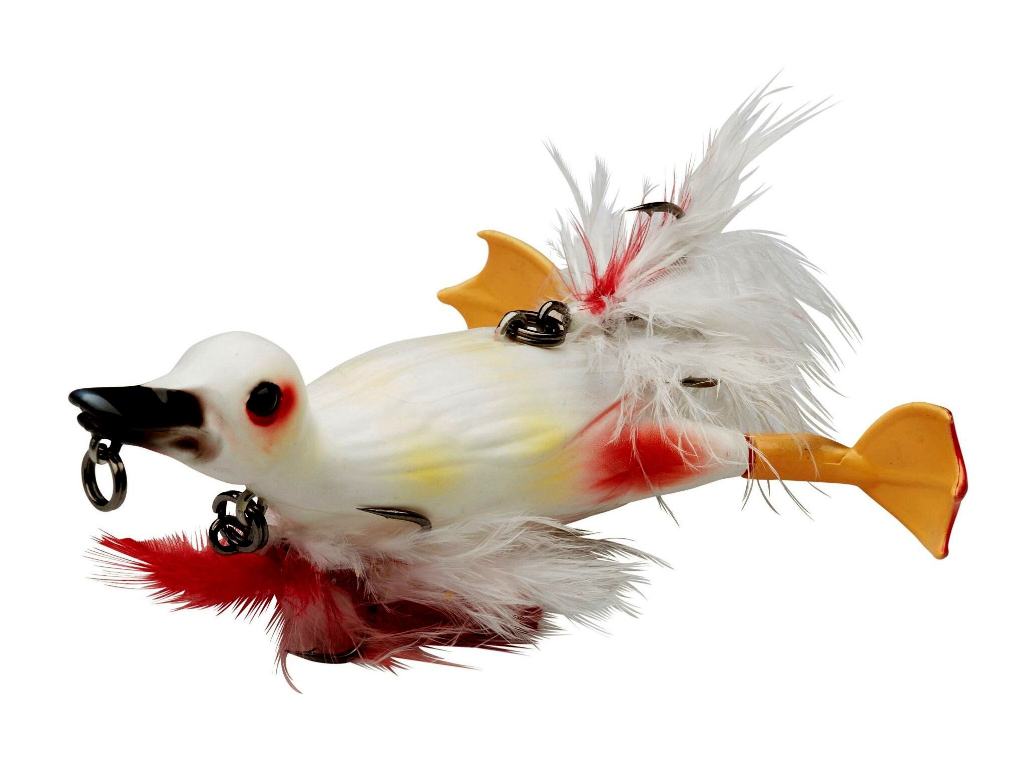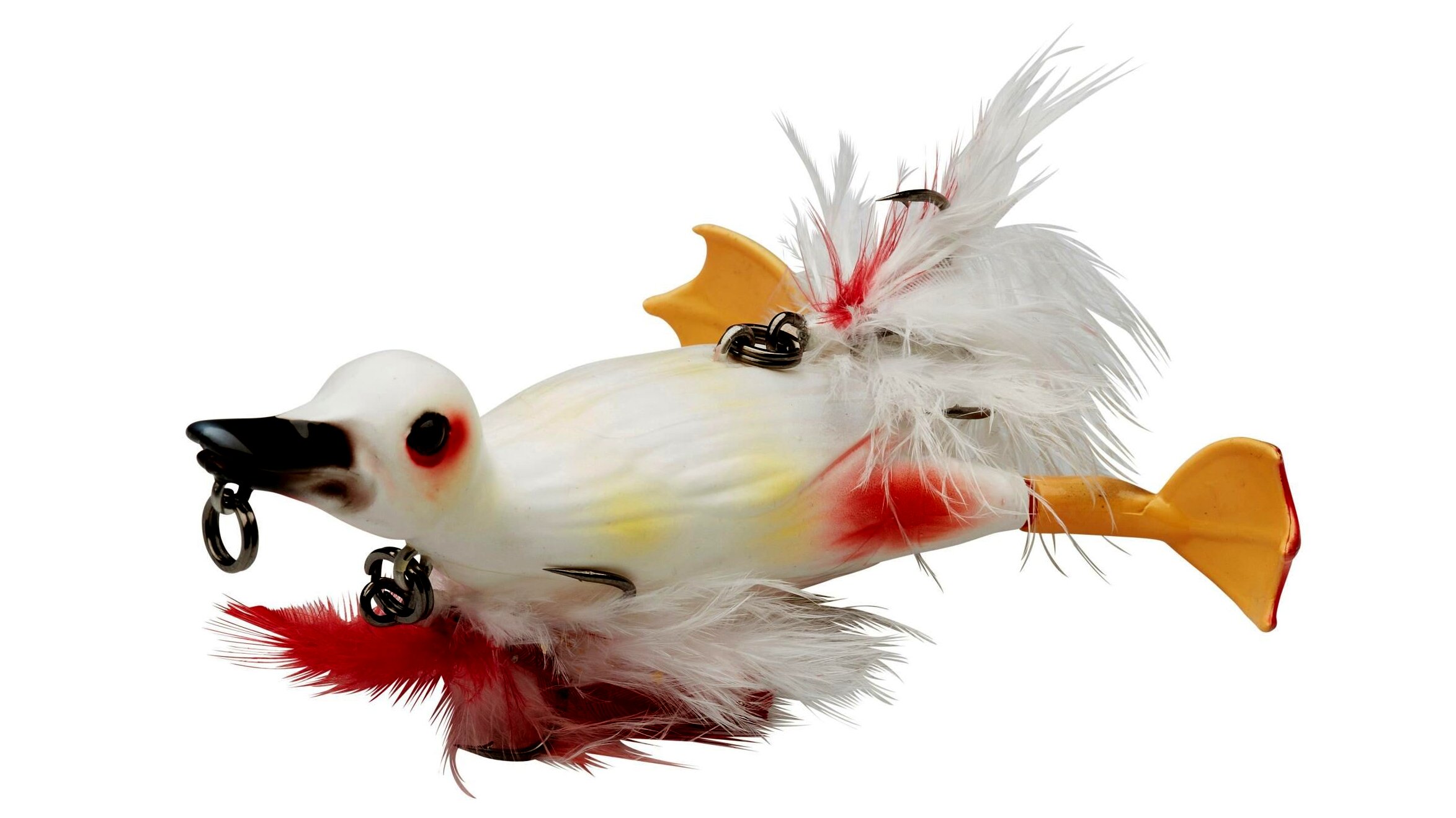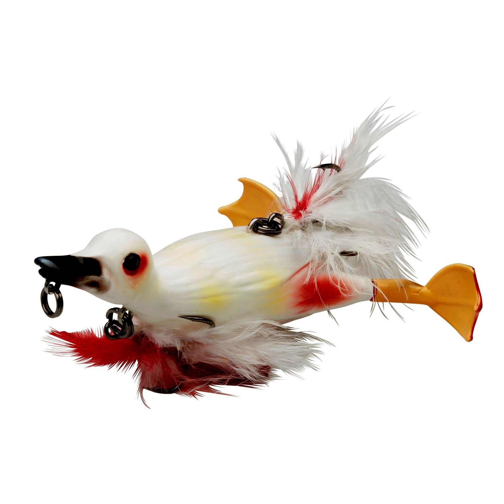 Szuper realisztikus kiskacsa utánzatú felszíni műcsali innovatív tulajdonságokkal. A 2016-os EFTTEX kiállításon 3 díjat nyert: a legjobb innováció, a legjobb kemény testű műcsali díját és a közönségdíjat. A 3D szkenneléssel készült részletek a legóvatosabb ragadozót is megtévesztik és brutális támadásokat vált majd ki! Kemény ABS-ből készült ultra erős test félig lágy, tartós lábakkal. A pörgő lábak hihetetlenül élethű, fröcskölő, csobogó akciót biztosítanak a csalinak, látványos buboréknyomot és rezgést hagy maga után, ami messziről odavonzza a ragadozó halakat. A nyíltvízi horgászathoz 2 db tollal borított hármas horog van a csalin, az egyik a hasán, a másik a hátán, a testhez rögzítve, kiváló megakasztási arányt biztosítanak. Akadós terepen vegyétek le a hasi horgot, a csali úgy van kialakítva, hogy mindig hassal lefelé úszik a vízen, úgyhogy bokorugró csaliként használhatjuk. mKétféle mozgási stílus: akasszuk a karabinert a csőréhez, a csali laposan, diszkrétebben fog úszni, mint egy olyan kiskacsa, amely menekülés közben próbál elrejtőzni is. Ha a mellén található karikába csatlakoztatjuk a zsinórt, a műcsali magasabban úszik, inkább pánikszerű menekülő mozgást imitálva. A műcsalit lassan és gyorsan is vezethetjük, folyamatos bevontatással, hosszú húzásokkal, a lehető legélethűbben imitál egy kiskacsát! Szuper csali csuka, feketesügér, musky és a nagy brutális harcsák horgászatára! Úgy tartják a horgászok, hogy egy jó felszíni kapást 10 másikkal ér fel – kössétek fel a Suicide Duck-ot és tapasztaljátok meg!