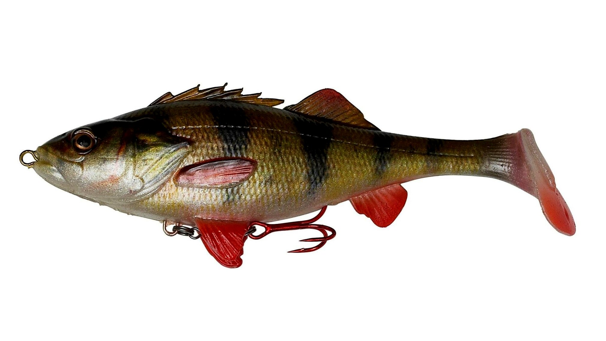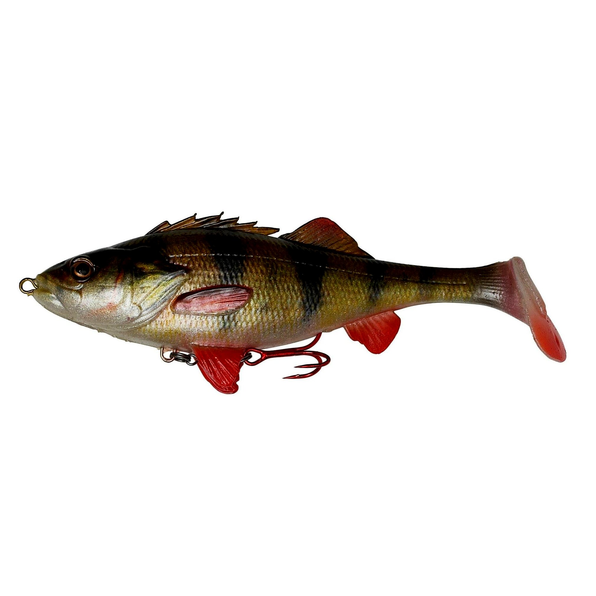 Egy valódi sügér 3D szkennelése alapján készült, tökéletesen kidolgozott részletekkel és Photo Chrome nyomtatott mintával, hozzáadott DNS illatanyaggal. Vannak olyan időszakok minden évben, amikor a sügér a kapitális csukák fő tápláléka és ezek a szuper élethű csalik halálosak lesznek ilyenkor! A lapátfarok csábító billegésre készteti a csalit és a farokban elhelyezett csörgőkapszula ingerlő, ketyegő hangokat hallat. A 2 kisebb méret készre van szerelve, a hason levő hármashorog egy forgóra csatlakozik, hogy a megakasztott hal ne tudja kirázni a csalit fárasztáskor. A nagy méret a briliáns Line Thru szerelékkel van ellátva, Line Thru átalakítóval és cserélhető végszerelékkel – a csali kapás után felcsúszik az előkén és a ragadozók nem tudják a csali tehetetlen súlyát a horogtól való szabadulásra felhasználni.
